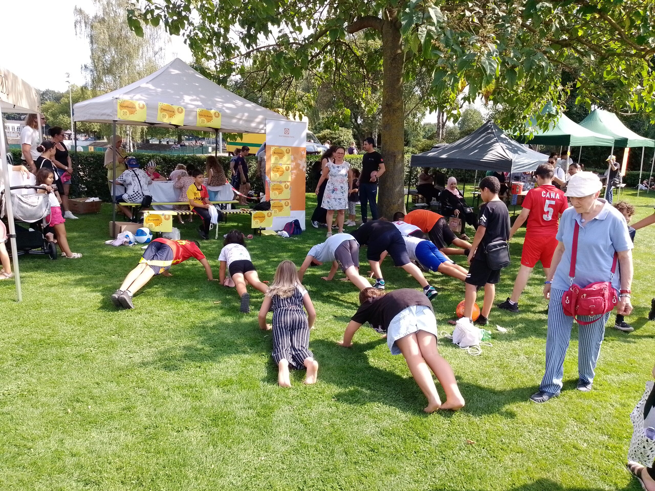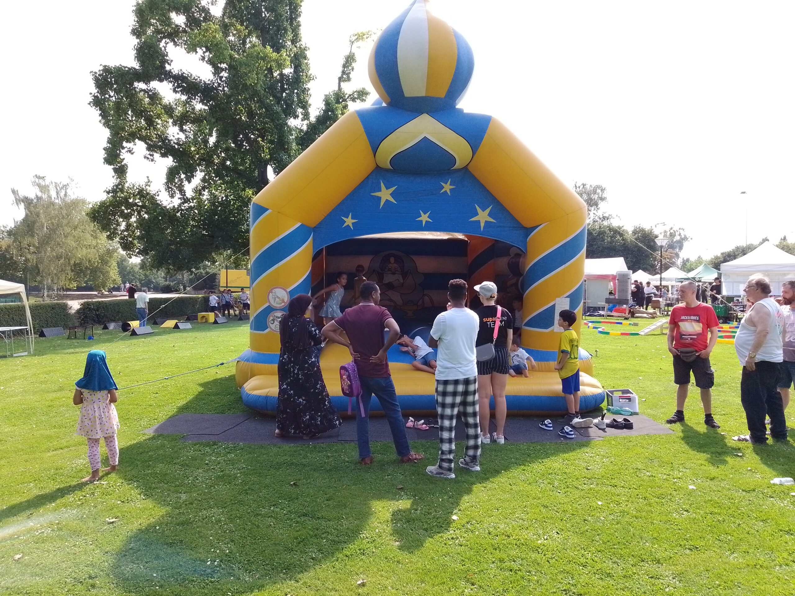 Das Ausprobieren einer Wasserflaschen-Schleuder, körperliche Auspowerungs-Angebote oder aber auch eine gigantische Höpfburg wurde zur Verfügung gestellt.