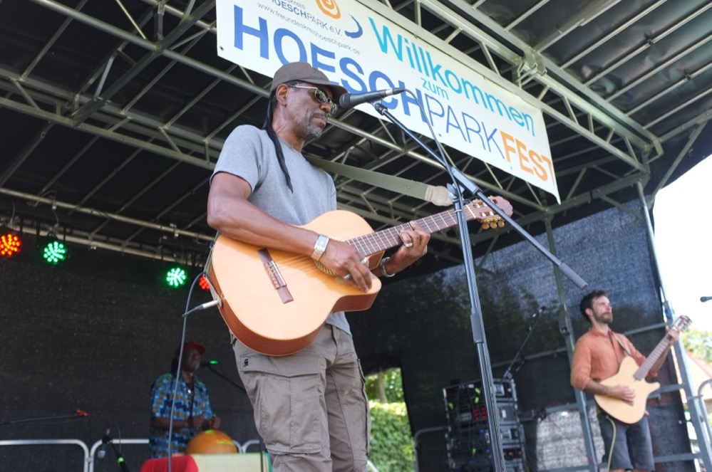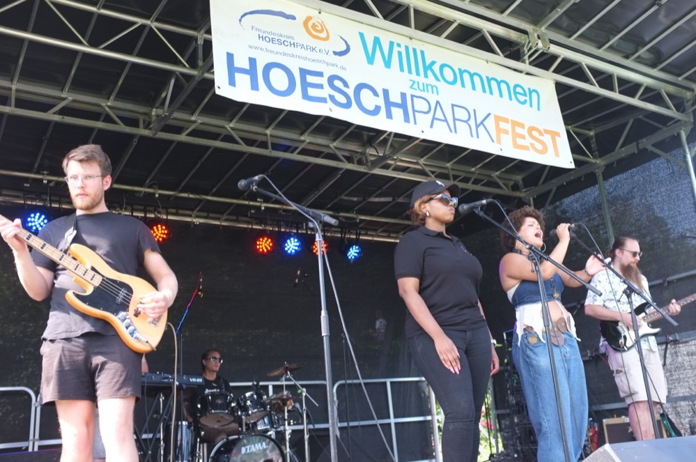 Diverse Musikgruppen waren das Highlight der Veranstaltung. So wurde mit verschiedenen Songs der Bands für Stimmung gesorgt. Oberbürgermeister Thomas Westphal, Bezirksbürgermeisterin Hannah Rosenbaum und Organisatorin Ute Ellermann haben passenden Worte zur Einläutung des Hoeschparkfestes gefunden.