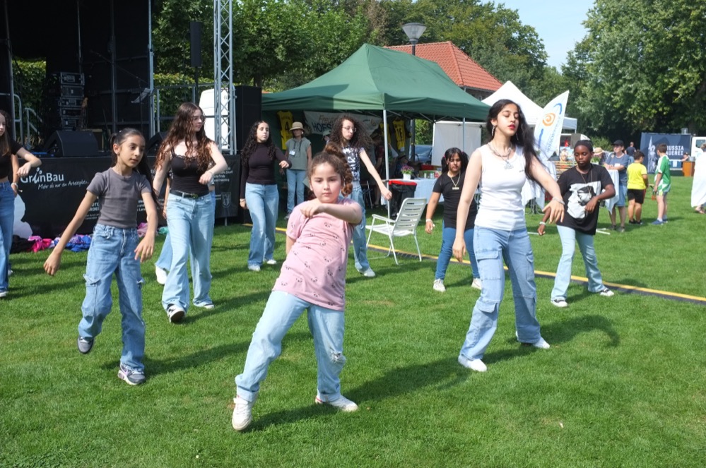 Zeitgleich konnte auch der Nachwuchs mit Musiker:innen auf der Bühne stehen: So wurden neben tollen Performances benannter Bands auch beeindruckende Aufführungen vom Budokan Dortmund bezüglich des Kampfsportes gezeigt sowie eine kinderfreundliche musikalische Aufführung von der Tanzgruppe Kita-Kinder, Stiftung Kinderglück, präsentiert.