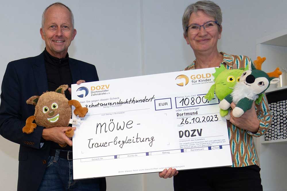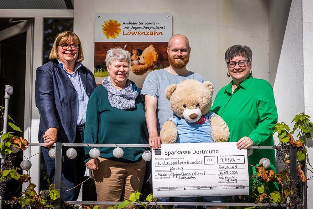 Dass dieses Ziel nun erreicht ist, dazu hat die Stiftung Gemeinwohl der Sparkasse Dortmund einen entscheidenden Teil beigetragen: Einen Scheck über 9.450 Euro übergaben Ende September Sabine Bartz vom Vorstand der Gemeinwohl-Stiftung und Spendobel-Geschäftsführerin Barbara Temminghoff, für die dies der letzte offizielle Termin vor ihrem Eintritt in den Ruhestand war, an den Ambulanten Hospizdienst Löwenzahn. Irene Steiner, Vorstandsvorsitzende und Öffentlichkeitsarbeit-Verantwortliche, und der Fundraisingbeauftragte Dominik Schiffer nahmen die Spende mit großem Dank entgegen.
