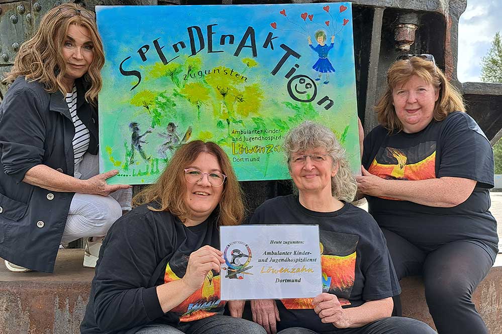 Kunst in Wassernähe erleben – das konnten die Menschen vor einigen Wochen auf der Kulturinsel am Dortmunder Phoenix-See, die sich an diesem Tag in einen OpenArts-Künstlermarkt verwandelt hatte. Mit dabei auch eine Künstlergruppe aus dem Kunstkreis Glücksschmiede von Susanne Weiß, die jetzt als Erlös aus dem Markt 2000 Euro an den Ambulanten Kinder- und Jugendhospizdienst Löwenzahn Dortmund spendete. Das Geld war zum einen beim Künstlermarkt und bei einer Kunstauktion eingenommen worden, zum anderen durch den Verkauf von Glückssteinen, die die Künstlerinnen bemalten. Zur Spendenübergabe trafen sich die Künstlerinnen Susanne Weiß, Anja Schneider und Carina Grunert gemeinsam mit Birgit Lindstedt von Löwenzahn auf der Kulturinsel, um den symbolischen Spendenscheck zu überreichen.