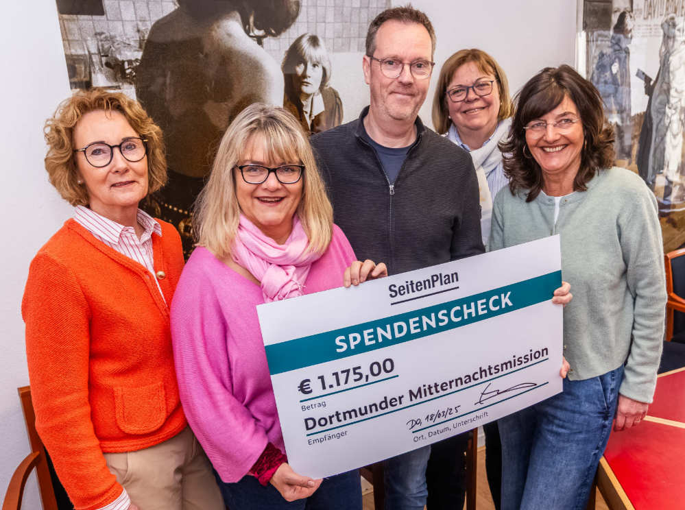 Mit einer kreativen Weihnachtsaktion hat die Agentur Seitenplan 1.175 Euro für den guten Zweck gesammelt. Die Spende unterstützt ein Projekt der Dortmunder Mitternachtsmission, das Hilfe für Betroffene des Menschenhandels und deren Kinder leistet.