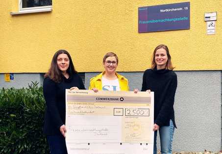 Auf dem Foto: Die amtierende Präsidentin des Soroptimist Clubs Dortmund Daniela Fischer (Mitte) übergibt die Spende an Ilda Kolenda(li) und Mara Woste (re) von der Frauenübernachtungsstelle Dortmund.
