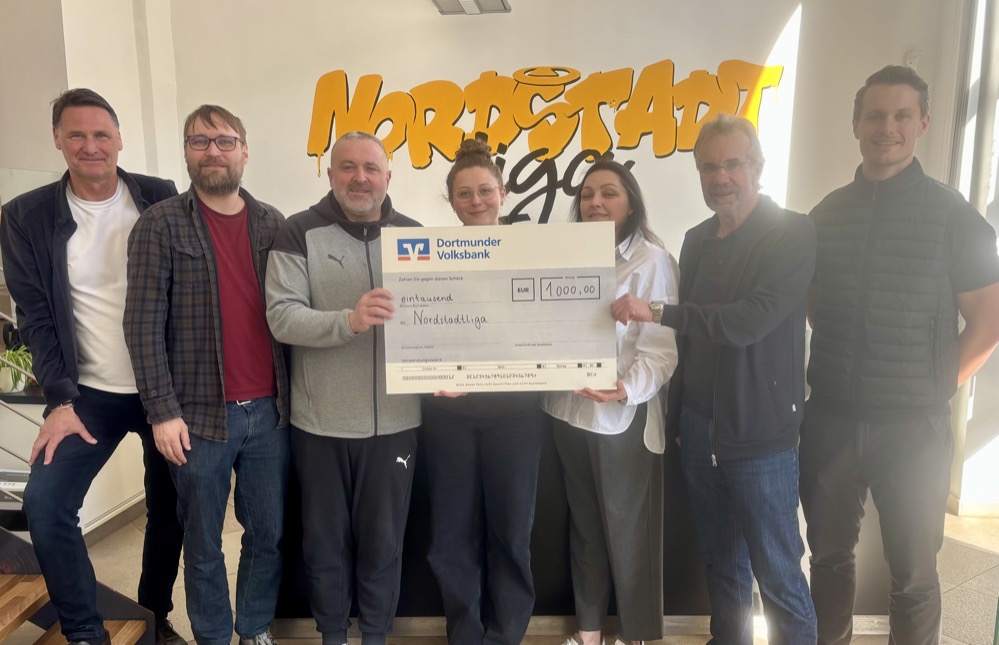 Als die Neuhoff Hausgeräte Küchen GmbH & Co.KG den Interkulturellen Wirtschaftspreis gewann, entschied das Familienunternehmen, das Preisgeld für einen guten Zweck zu spenden. Bereits in seiner Dankesrede verkündete der Betriebsinhaber Wolfgang Neuhoff im Beisein von Oberbürgermeister Thomas Westphal und dem NRW-Staatssekretär für Arbeit, Matthias Heidmeier, die Summe in Höhe von 1.000 € einem integrativen Projekt zukommen zu lassen. Für sein vorbildliches Engagement für Integration und Teilhabe erhielt das Projekt „Nordstadtliga“ die finanzielle Anerkennung durch das Unternehmen. „Wir haben den Interkulturellen Wirtschaftspreis auch deshalb bekommen, weil bei uns viele Nationalitäten erfolgreich zusammenarbeiten,“ betont Wolfgang Neuhoff bei der Spendenübergabe in den Räumen der Nordstadtliga. Mit dem Preis würdigt das Multikulturelle Forum mit Partnern aus Wirtschaft und Verwaltung (z.B. IHK zu Dortmund, HWK Dortmund oder Kommunales Integrationszentrum Dortmund) seit fast 20 Jahren kleine und mittelständische Betriebe, die kulturelle Vielfalt wertschätzend in die Unternehmenskultur integrieren. „Für uns war es daher wichtig, das Geld an ein Projekt zu geben, das sich ebenfalls für Vielfalt und Toleranz einsetzt“, so Neuhoff. Fündig wurde er schließlich am Borsigplatz, an der ehrenwerten Hausnummer 09.