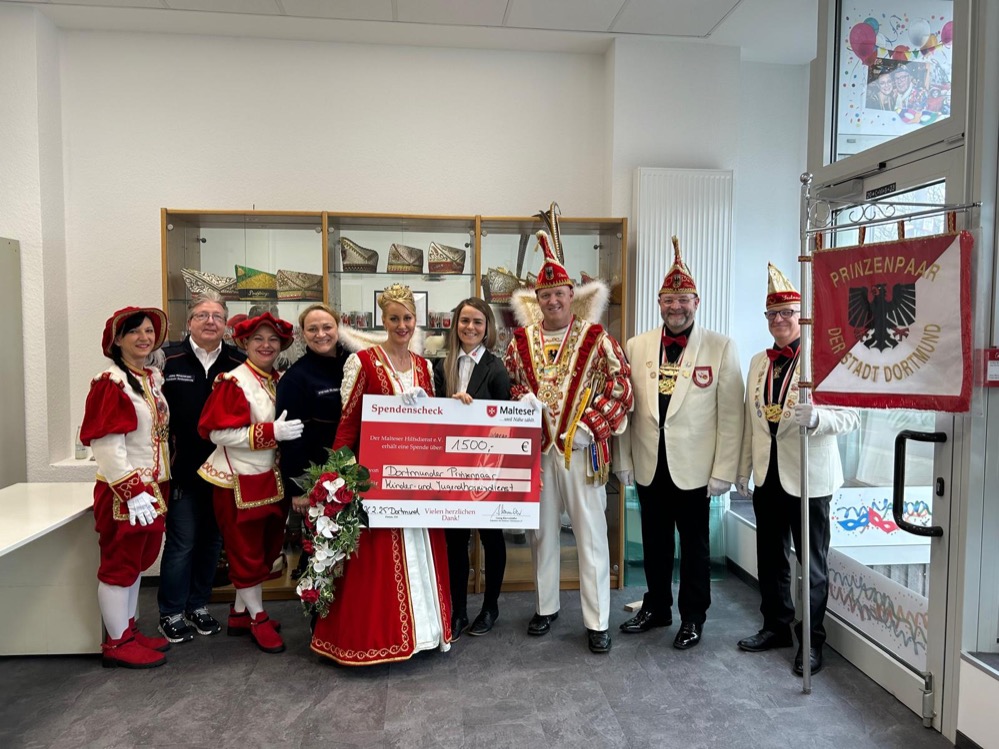 Der Prinzenball des Festausschusses Dortmunder Karneval e. V. im Goldsaal der Westfalenhallen war ein Gewinn, nicht nur für alle Feiernden, sondern auch für den Malteser Kinder- und Jugendhospizdienst. Mit viel Herz und Engagement wurden an dem Abend Spenden gesammelt, die vom Prinzenpaar Danny I. (Brost) und Nina II. (Wolf) großzügig aufgestockt wurden. Insgesamt kamen beeindruckende 1.500 Euro zusammen.