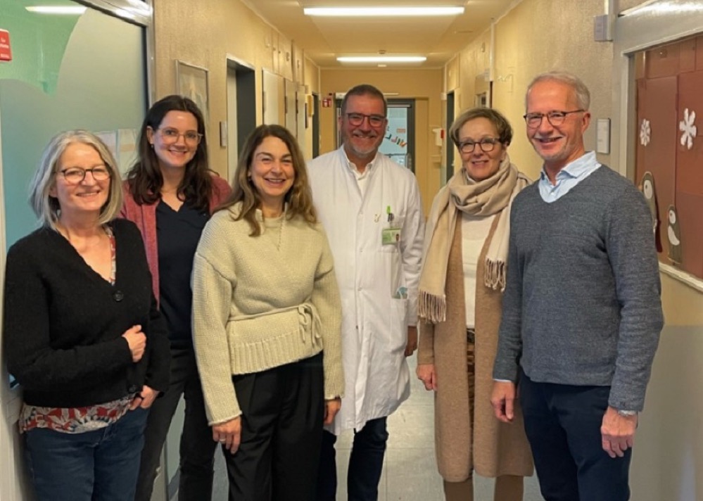 Auf dem Foto zu sehen sind Michaele Czech und Miriam Thierfelder als Psychoonkologinnen des Kinderonkologischen Zentrums, Prof. Dominik Schneider, Direktor der Kinderklinik, Barbara Drewes, Fundraising-Leiterin der Kinderklinik, sowie Julians Eltern, Andrea und Christian Scheu.