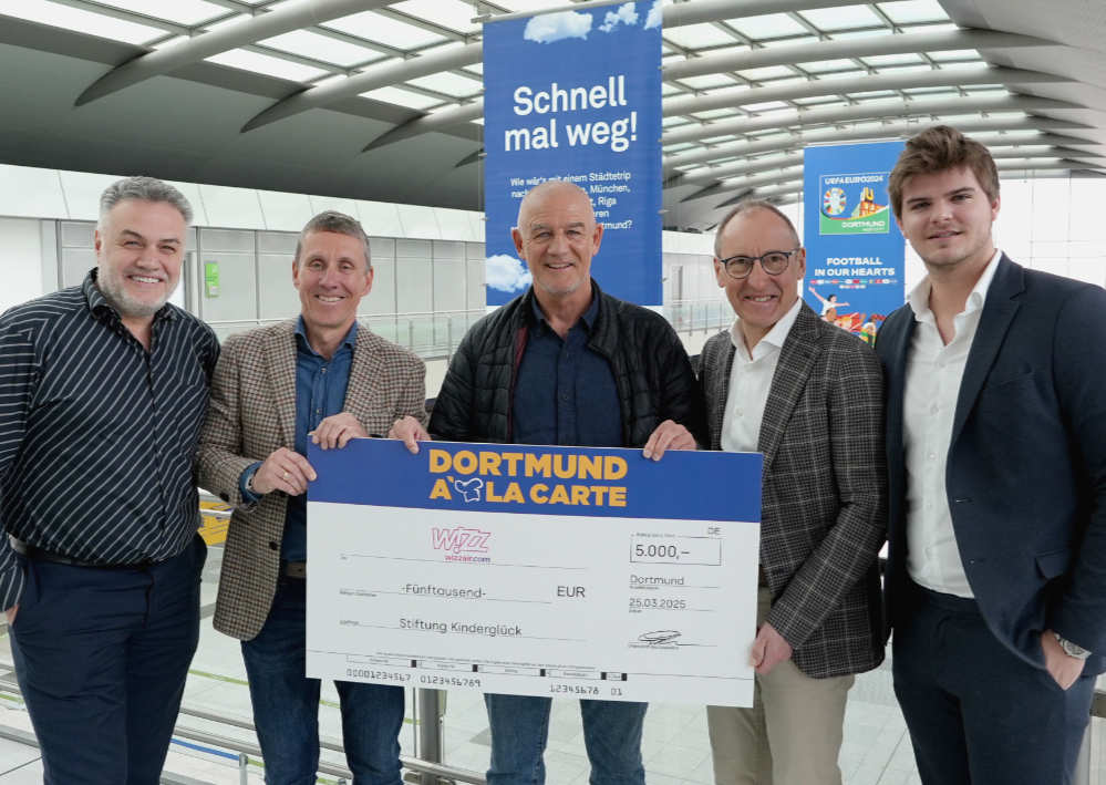 Im Rahmen von Dortmund à la carte, standen nicht nur kulinarischer Genuss, sondern auch soziales Engagement im Mittelpunkt. Wizz Air spendete für jeden Passagier, der in diesem Zeitraum vom Dortmund Airport mit der Airline geflogen ist, 10 Cent an die Stiftung Kinderglück. Bei insgesamt 27.172 Passagieren kamen so 2.717,20 Euro zusammen – eine Summe, die der Dortmund Airport auf 5.000 Euro aufrundete.