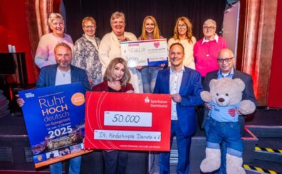 Das Kabarett- und Comedy-Festival RuhrHOCHdeutsch hat gemeinsam mit der Sparkasse Dortmund eine Rekordspende von 50.000 Euro für die Deutschen Kinderhospiz Dienste erzielt. Über Wochen hinweg traten 80 Künstler:innen bei 115 Veranstaltungen im Spiegelzelt vor der Kulisse von Phönix West auf. In diesem Jahr war die Kinderhospizarbeit das erklärte Spendenziel des Festivals. Initiator Helmut Sanftenschneider machte das Publikum während der gesamten Spielzeit immer wieder auf die Arbeit der Deutschen Kinderhospiz Dienste aufmerksam. Ehrenamtliche des Ambulanten Kinder- und Jugendhospizdienstes Dortmund informierten vor Ort über ihre Arbeit und sammelten Spenden. Insgesamt kamen 40.665,01 Euro zusammen – durch Spenden, eine gespendete Künstler:innen-Gage und den Verkauf von Merchandising-Artikeln. Peter Orth, Vorstand der Sparkasse Dortmund, rundete die Summe großzügig auf 50.000 Euro auf. Bei der symbolischen Übergabe im Cabaret Queue in Hörde betonte er, wie wichtig die Unterstützung der Kinderhospizarbeit sei. Birgit Lindstedt, Projektleiterin der Deutschen Kinderhospiz Dienste, bedankte sich im Namen des gesamten Teams für das Engagement und die Solidarität aller Beteiligten. Auch Thorsten Haase, geschäftsführender Vorstand der Deutschen Kinderhospiz Dienste, zeigte sich tief beeindruckt von der Spendenbereitschaft des Publikums und der Künstler:innen sowie vom ehrenamtlichen Einsatz seines Teams in Dortmund.