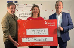 Die Geschäftsführerin von „Die Brücke Dortmund e. V.“, Dr. Verena Löffler, nahm eine Spende in Höhe von 2.500 Euro von DOGEWO21-Geschäftsführer Samuel Šerifi entgegen. DOGEWO21 möchte mit der Spende die Präventionsarbeit des 1986 gegründeten Vereins gegen Kinder- und Jugendkriminalität unterstützen. Der Verein entwickelt und führt sozialpädagogische, sozialarbeiterische, meditative und therapeutische Angebote für Kinder und junge Erwachsene im Alter von elf bis siebenundzwanzig Jahren durch und bietet Sozial-Kompetenz-Trainings an, um alltagstaugliche und gewaltfreie Lösungsstrategien zu vermitteln. Samuel Šerifi betont, dass gesellschaftliche Verantwortung für DOGEWO21 über das Kerngeschäft hinausgeht und die Arbeit der Brücke Vertrauen, Sicherheit und Perspektiven für Kinder und Jugendliche schafft. Dr. Verena Löffler zeigt sich dankbar für die Unterstützung und die Anerkennung der wichtigen Arbeit des Vereins für junge Menschen in der Nordstadt und in ganz Dortmund.