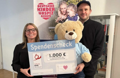 Die Stiftung REWE Dortmund unterstützt den Ambulanten Kinder- und Jugendhospizdienst Dortmund mit einer Spende von 1.000 Euro. Der Dienst begleitet und entlastet Familien mit lebensverkürzend erkrankten und schwerstmehrfachbehinderten Kindern und steht ihnen von der Diagnose bis über den Verlust hinaus zur Seite. Mitarbeitende und Ehrenamtliche schenken Zeit, Unterstützung und Zuversicht und bieten neben der direkten Familienbegleitung auch eine Geschwistergruppe an, in der Kinder und Jugendliche Raum für Austausch, Ablenkung und gemeinsame Erlebnisse finden. Ziel ist es, Lebensfreude und Normalität in einer belastenden Lebenssituation zu bewahren. Die Spende der Stiftung REWE Dortmund dient der nachhaltigen Sicherung dieser Arbeit und fließt in die Ausbildung ehrenamtlicher Begleiter:innen sowie in Angebote für betroffene Familien und Geschwisterkinder. Damit unterstützt die Stiftung wichtige Hilfsangebote in der Region und trägt zu ihrem Stiftungszweck „Gesundheitsförderung und Bewegung“ bei. Christina Majchrzak von der Stiftung REWE Dortmund betont den großen Respekt für die Arbeit des Kinder- und Jugendhospizdienstes, dessen Mitarbeitende Familien in schwersten Momenten Halt und Unterstützung geben.