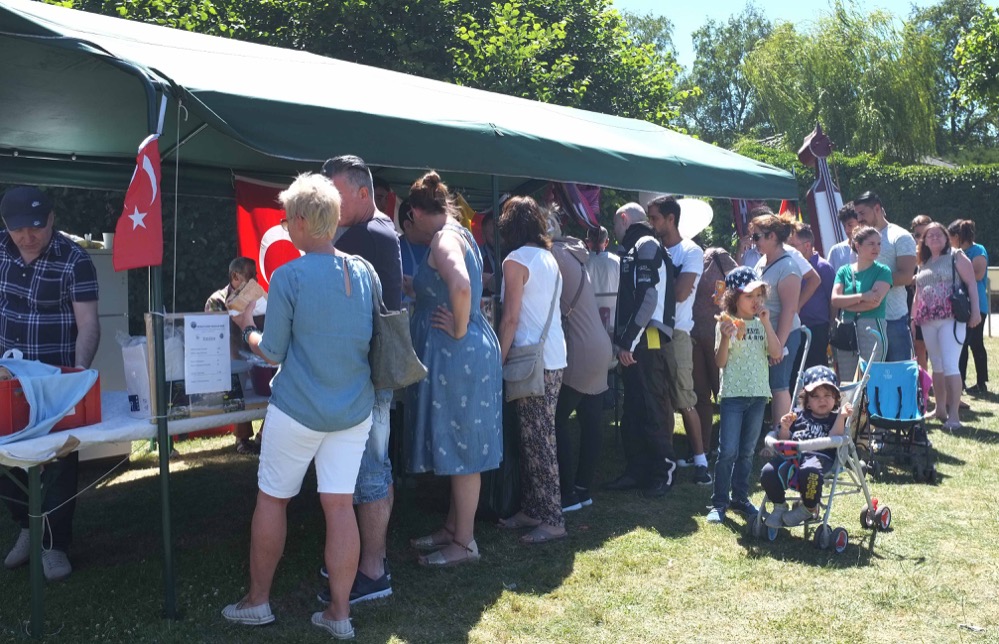 Die Gäste hielten es dank des sommerlichen Windes stundenlang auf den Bänken vor der Bühne in der Sonne aus, standen Schlange vor dem Grill des türkischen Kulturvereins Trabzon, um eine Köfte-Tasche zu bekommen, informierten sich an den vielen Ständen über Foodsharing und Flüchtlingshilfe, über Politik und Museumsarbeit, über Imkerei und Gartenpflege.