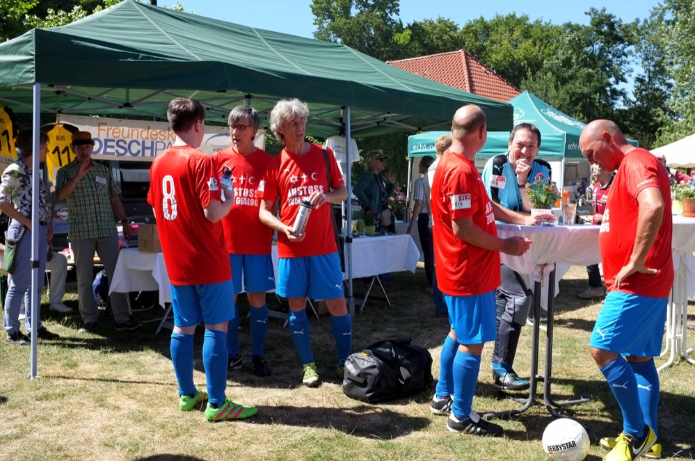 Sie kündigten die diversen sportlichen Vorführungen der Karate-, Budokan- und Taekwon-Do-Vereine, die akrobatische Vorstellung der Cheerleader von den Dortmunder Giants, die Tanzeinlagen der Seniorinnen-Gymnastikgruppe und der Beat-Bienen, plauderten mit den Pfarrern vor deren Spiel im interreligiösen Turnier, das diese erneut gegen die Imame verloren, behielten Stimme und Nerven, als für die Kinder die Ziehung der Gewinnen nach dem Hoeschpark-Quiz anstand.