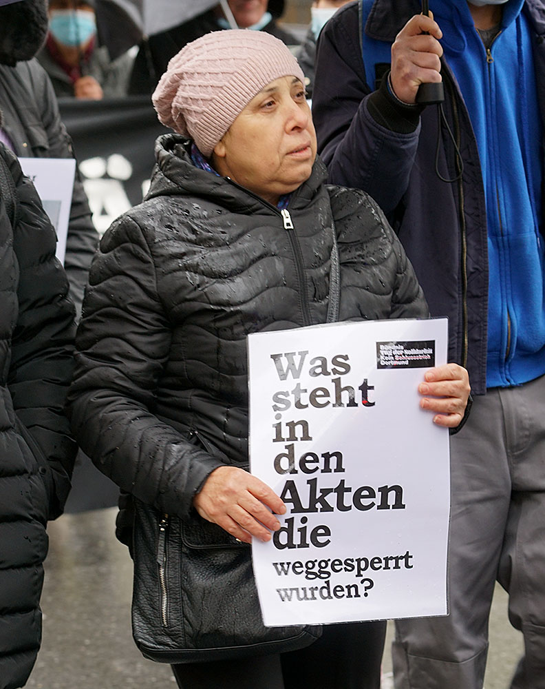 „Die Frage, warum ihr Vater ausgesucht wurde, bleibt ungeklärt. Und es sind viele Helferinnen und Helfer nicht ermittelt worden“, erklärte Ali Şirin vom Bündnis „Tag der Solidarität – Kein Schlussstrich Dortmund“ im Vorfeld der Demo.