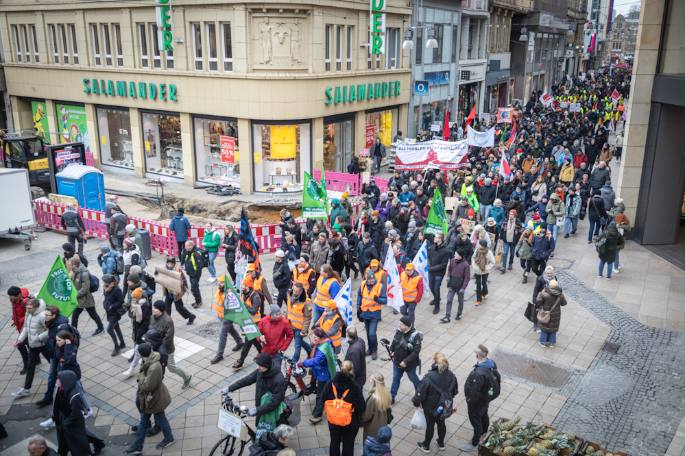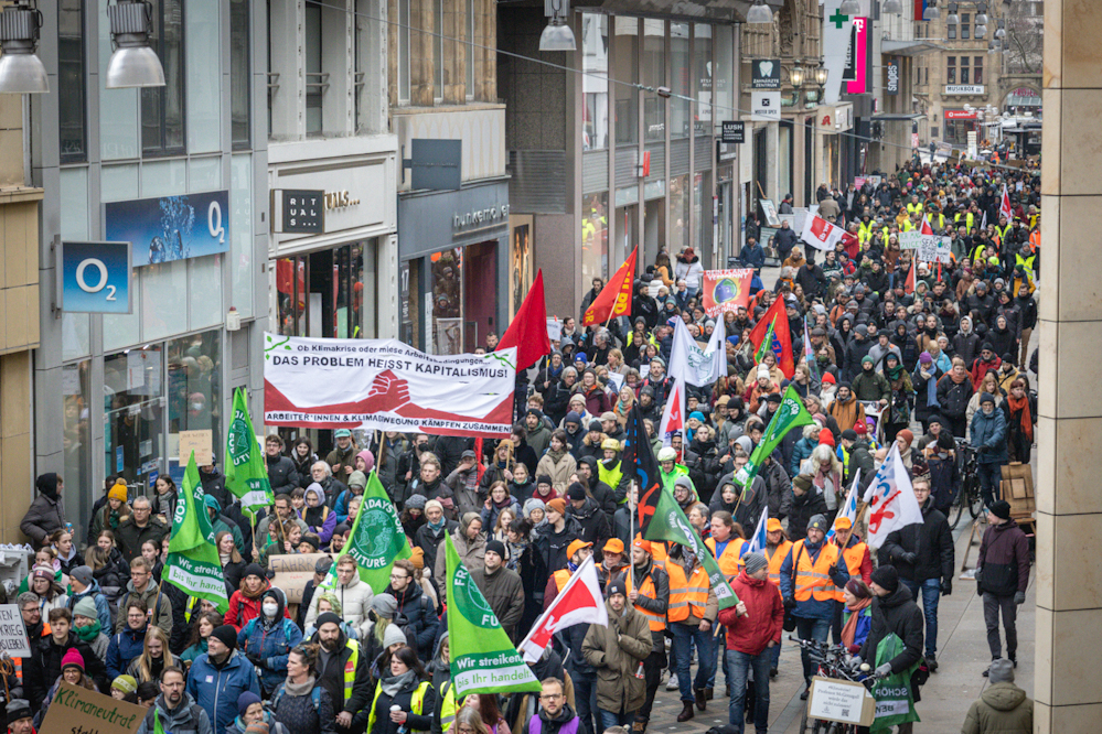 Die Demonstrierenden aus dem öffentlichen Dienst marschierten gemeinsam mit „Fridays For Future“.