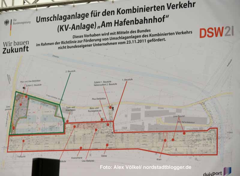 Als Alternative wird jetzt mit dem Bau einer Anlage für den kombinierten Verkehr (KV) in unmittelbarer Nachbarschaft zum Hafengelände begonnen. Das Besondere: Nicht nur der Containerumschlag, sondern auch der Umschlag von Sattelaufliegern und Wechselbrücken wäre dort möglich. Dieses Angebot fehlt trotz eines entsprechenden Bedarfs bislang in der Region.