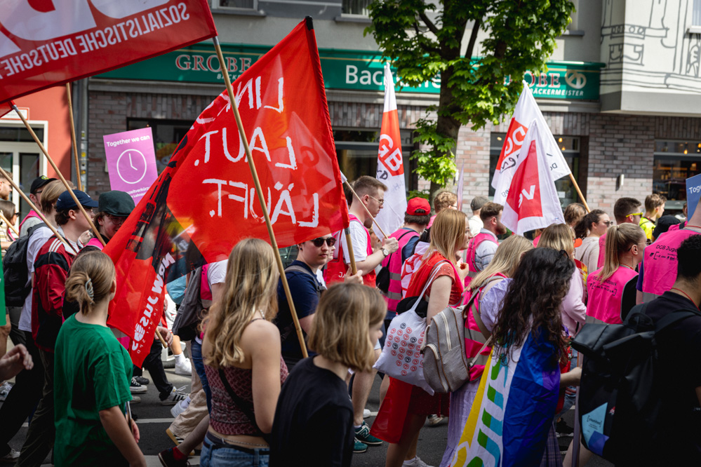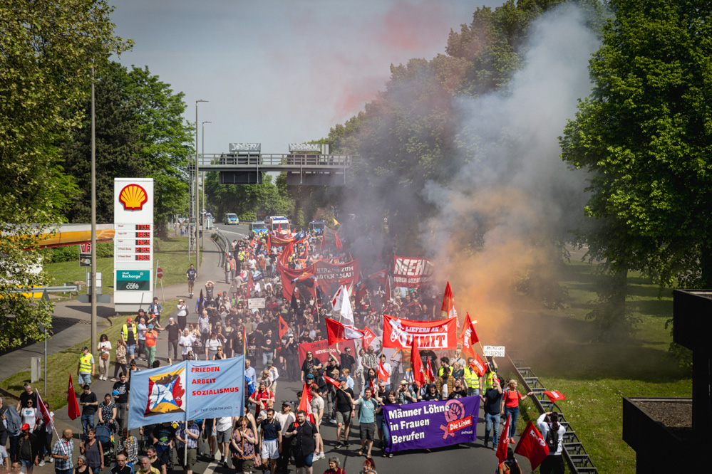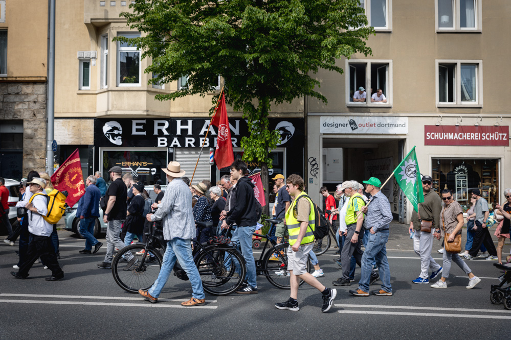 „Es geht uns um unsere Kernforderungen: Mehr Lohn, mehr Sicherheit, mehr Freizeit. Das sind alles Dinge, die die Menschen brauchen, um leben zu können“, erklärte Jutta Reiter, Vorsitzende des DGB in Dortmund, vor Beginn der Demonstration. Ihr persönlich sei wichtig, dass die Menschen auch in Zukunft existenzsicher, gesundheitsschützend, mitbestimmend und tarifgebunden arbeiteten, um eben diese kollektiv mitgestalten zu können.