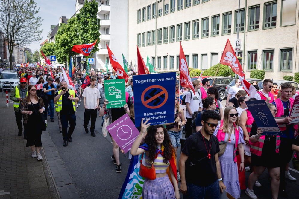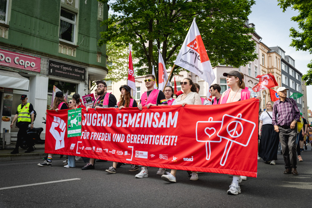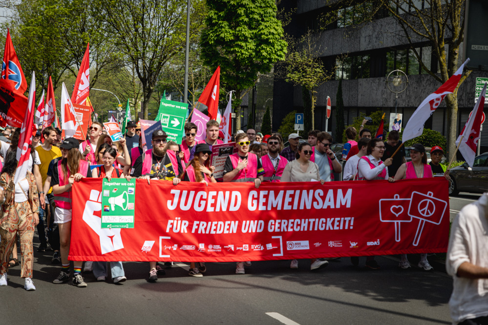 Der traditionelle Demonstrationszug des Deutschen Gewerkschaftsbundes zog friedlich durch die Dortmunder Innenstadt zum Westfalenpark und endete dort mit einem Familienfest. Besonders war in diesem Jahr, dass der „Jugendblock“ den Demonstrationszug anführte. Laut wurden dort besonders Forderungen nach sozialer Gerechtigkeit, Asylrecht und Widerstand gegen den Rechtsruck und die „Alternative für Deutschland“ (AfD).