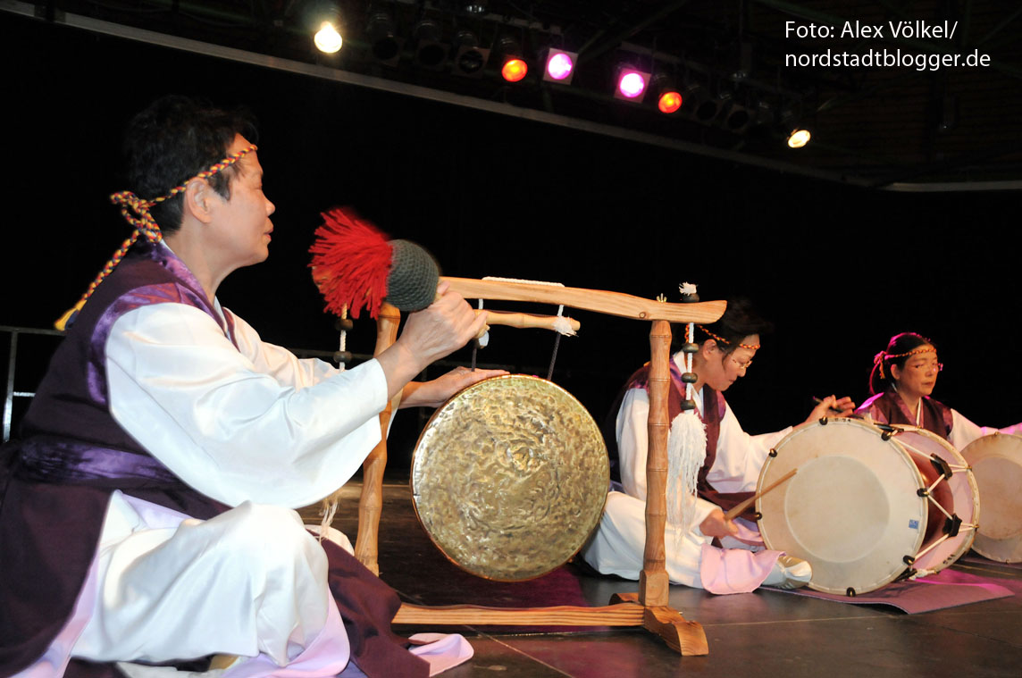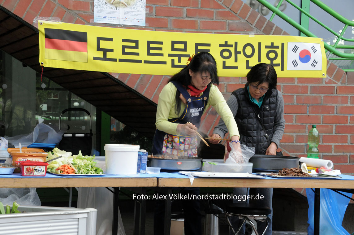 Das Tanz Folk-Festival steht für Weltoffenheit und multikulturelle Verständigung, für Gastfreundschaft und Begegnung. Veranstalter ist das Dietrich-Keuning-Haus in Kooperation mit den beteiligten Tanzgruppen. Wegen des Wetters wurden die Tanzbeiträge ins Haus verlegt. Allerdings war das nicht unbedingt ein Nachteil: Durch die Bühne waren die Beiträge so besser zu verfolgen als draußen. Doch auch vor dem Haus gab es Stände: Verschiedene Nationalitäten warfen dort die Grills an.