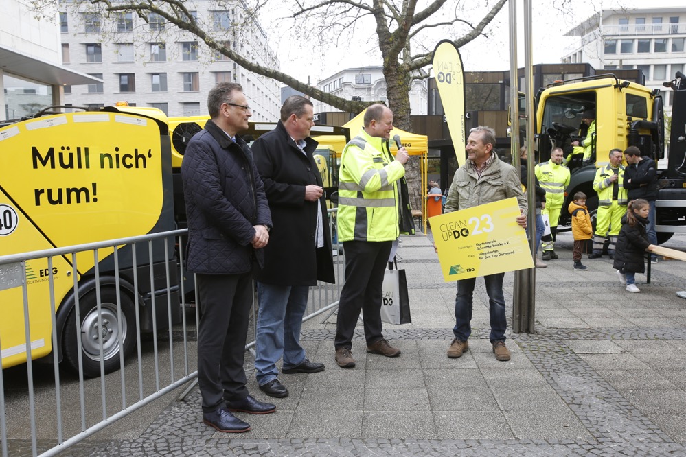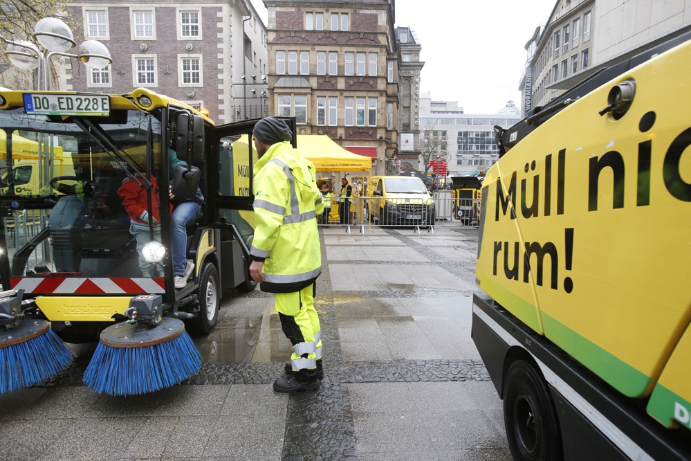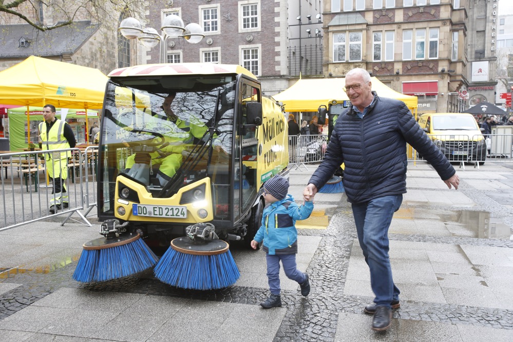 Auf dem Reinoldi-Kirchplatz präsentieret die EDG zudem wieder zahlreiche Fahrzeuge aus ihrem Fuhrpark: Die Besucher konnten Groß- und Kleinkehrmaschinen, Wasch- und Müllwagen und Spezialgeräte der Grünpflege besichtigen. Die Fahrer erläutern die aufwendige Technik der Spezialfahrzeuge. Besonders aufregend war es für die jüngeren Besucher:innen, wenn sie in eigens eingerichteten Parcours einige Runden mit der Kleinkehrmaschine drehen. konnten Gewinnspiele rundeten den Aktionstag ab.