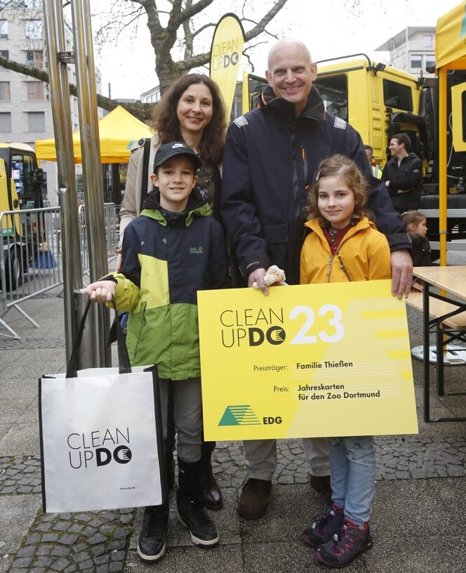 Ein weiterer Höhepunkt der Veranstaltung war die Verleihung der Gewinne an die unter den Anmeldungen ausgelosten Preisträger:innen. Der Umweltdezernent der Stadt Dortmund, Stefan Szuggat, übergab gemeinsam mit den EDG-Geschäftsführern Frank Hengstenberg und Bastian Prange die symbolischen Gewinner-Schecks. Die Preisverleihung erfolgte in drei Kategorien: In der Kategorie bis vier Personen bekam Familie Thießen sechs Jahreskarten für den Zoo Dortmund.