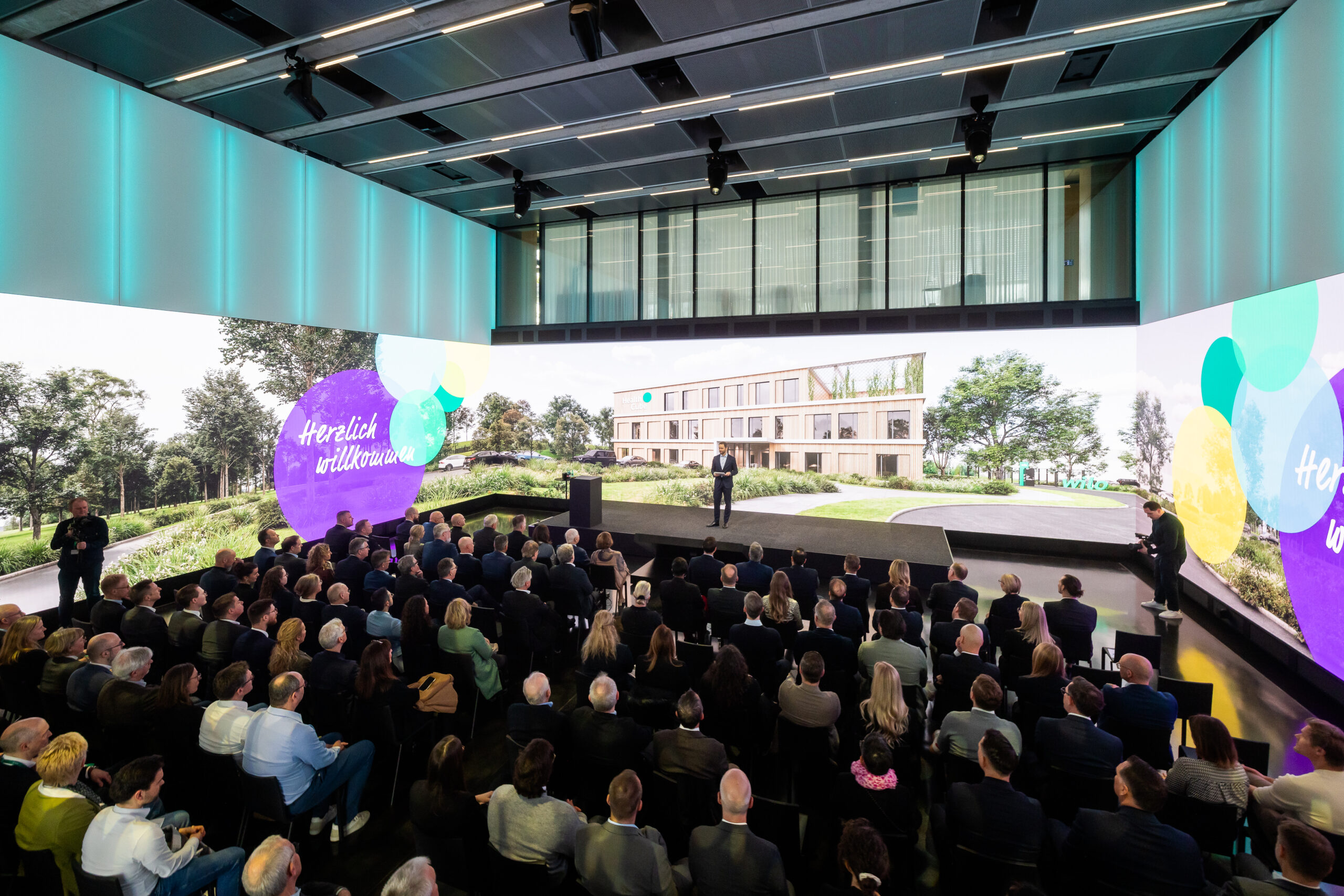 Nachdem die ein um andere Reden gehalten, mehr als ein Foto gemacht und das Band feierlich durchschnitten wurde, besichtigten die Teilnehmenden das neue Gesundheitszentrum. Auf drei Etagen ist Platz für Wilos Global Health Management, von dem Mitarbeitende weltweit profitieren sollen. Zudem sind die Betriebsmedizin, psychotherapeutische Angebote und eine Gesundheitslotsin mit Sozial- und Lebensberatung in das Zentrum integriert.