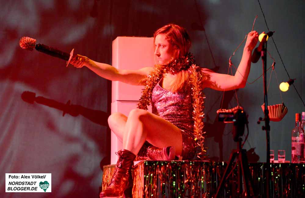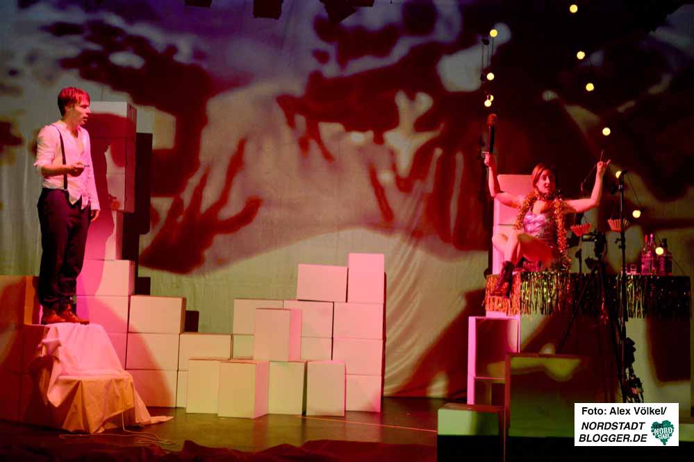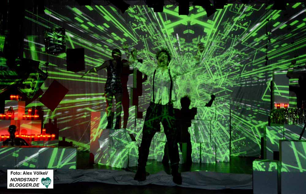 Das Trio Björn Gabriel (Regisseur und Text), Steffi Dellmann (Ausstattung) und Anna Marienfeld (Produktion) entwirft mit Hilfe der Schauspielerinnen und Schauspieler Martin Hohner, Fiona Metscher, Aischa-Lina Löbbert und Mathias Hecht ein düsteres Bild, bedrückend, beklemmend und furchterregend ist die Atmosphäre, aber auch laut und energisch, bisweilen sogar bunt und fröhlich.