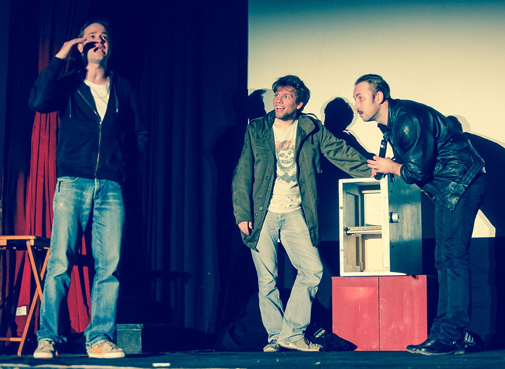 Auch in Erinnerung bleibt der Moment, wo unser erster „Kalle“-Darsteller nach einigen Probenwochen absprang. Schweren Herzens, aber mit guten Gründen – schließlich wird sein erstes Kind ungefähr zur Aufführung kommen, und auch der Uni-Abschluss sollte bis dahin abgehakt sein.