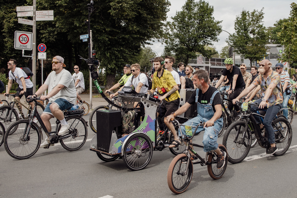 Laute Drum & Bass-Musik aus den Lautsprechern und eine scheinbar nicht endende Fahrraddemo: Mit über tausend Teilnehmenden und guter Stimmung fuhr der „REving.day“ am späten Sonntagmittag durch Eving und anschließend in die City. Die Party auf dem Fahrrad hatte aber auch einen politischen Hintergrund. Die Organisator:innen fordern eine Wiederbelebung des Stadtteils Eving.