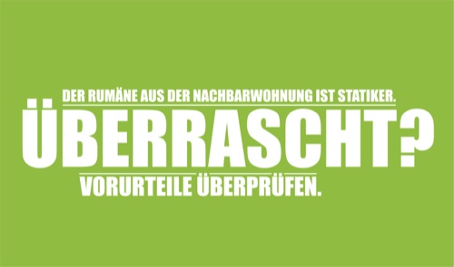 - „Der Rumäne aus der Nachbarwohnung ist Statiker. … Überrascht? … Vorurteile überprüfen.“