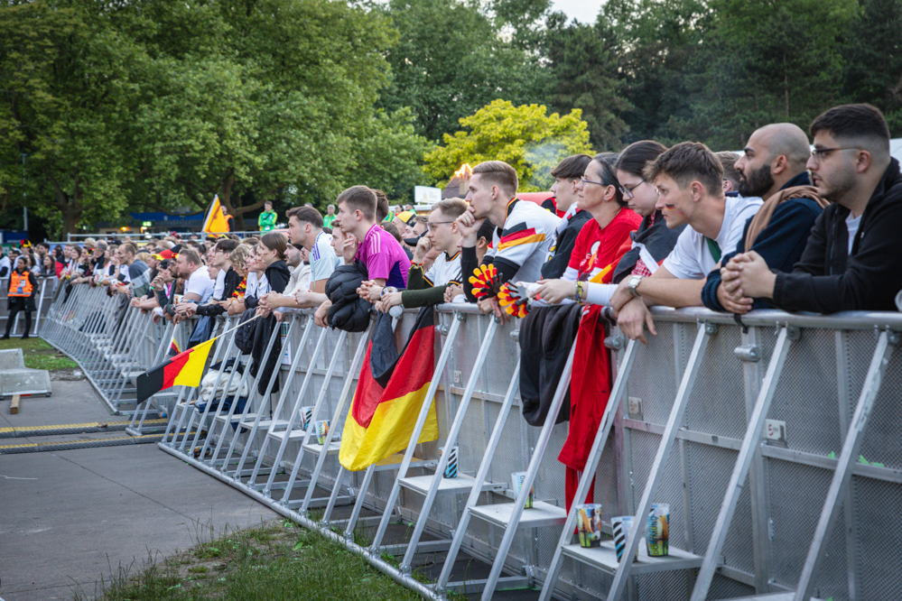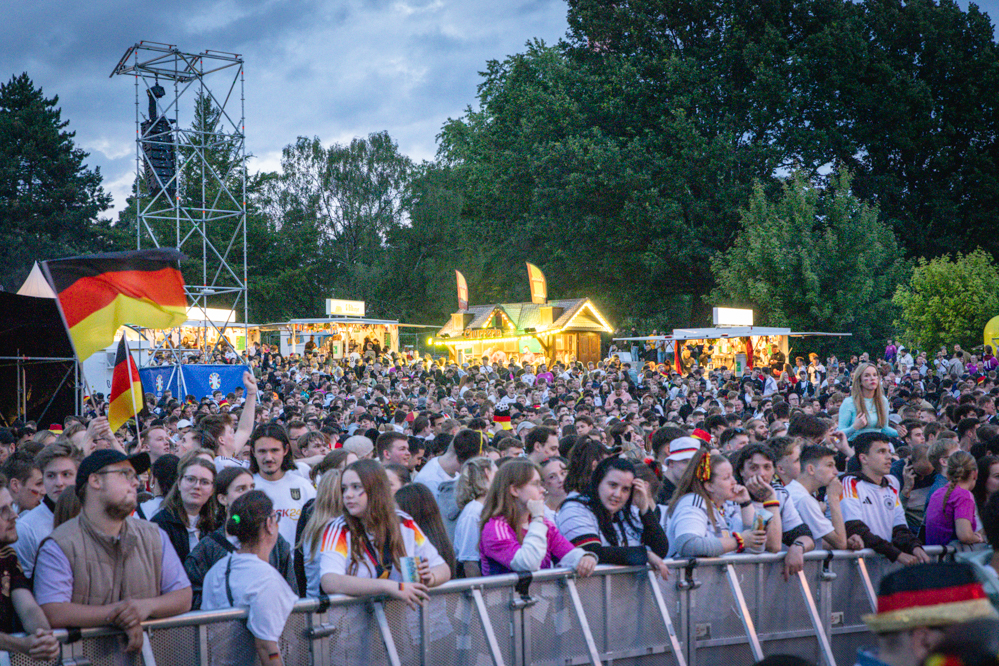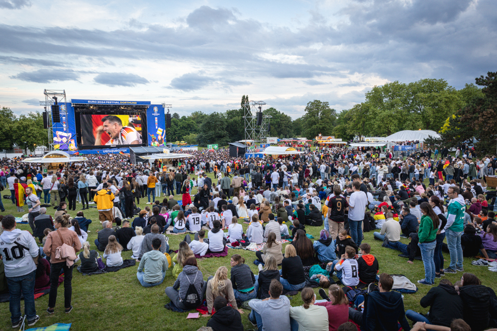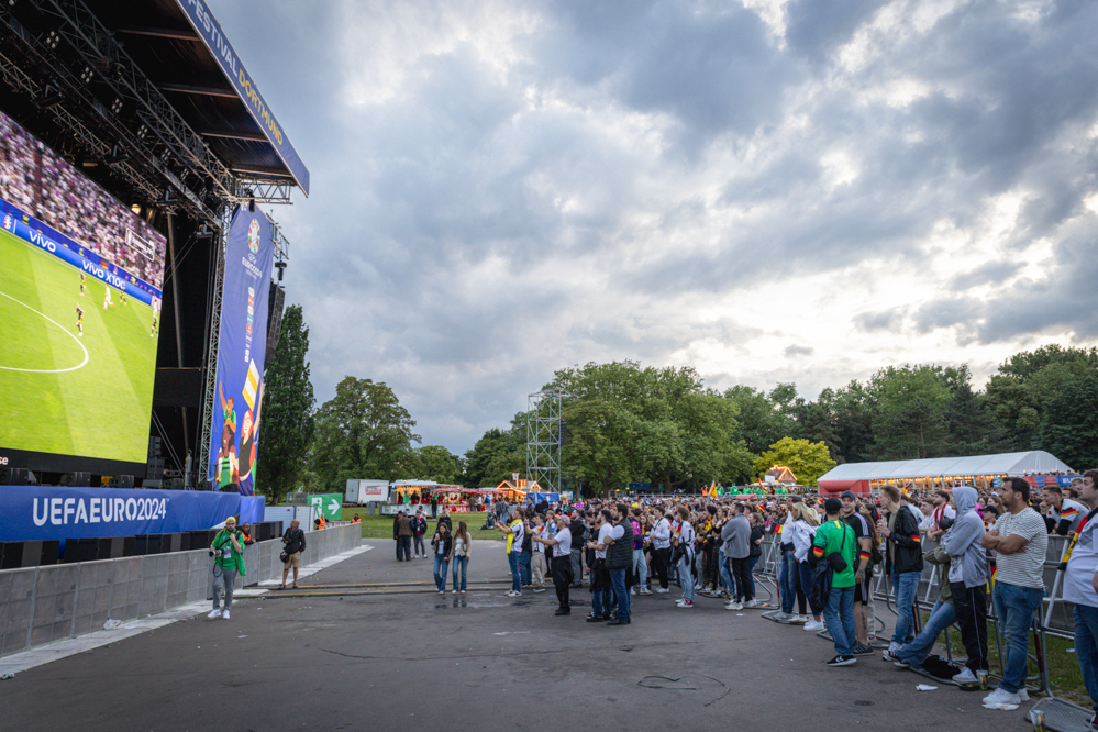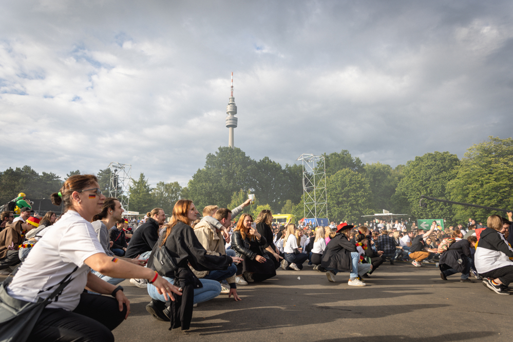 Zum Auftakt am Freitag verfolgten rund 13.500 Menschen das Eröffnungsspiel der UEFA EURO 2024 in den beiden Dortmunder Fan Zonen. Rund 6000 kamen zum Friedensplatz, etwa 7500 in den Westfalenpark.