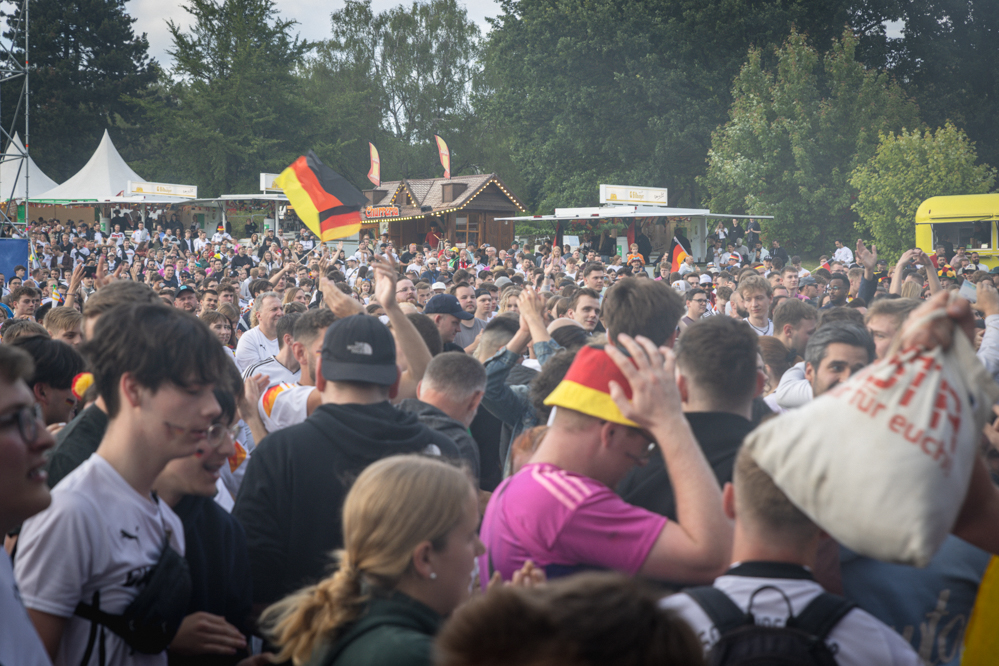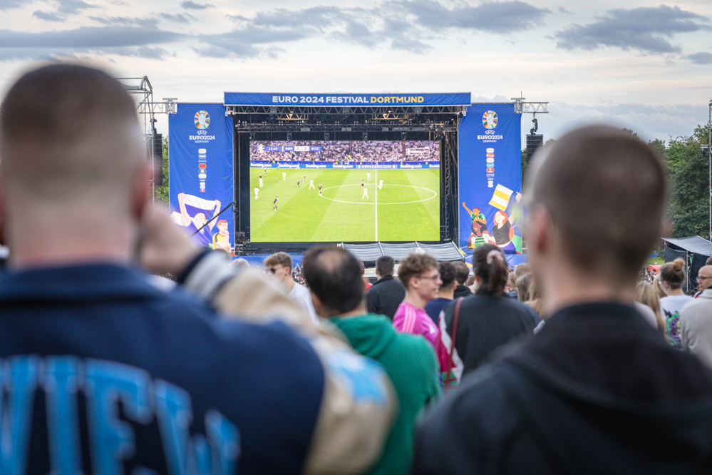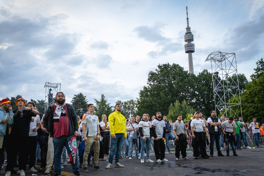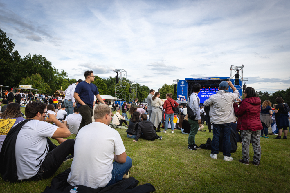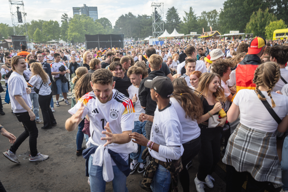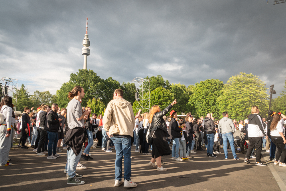 Zum Auftakt am Freitag verfolgten rund 13.500 Menschen das Eröffnungsspiel der UEFA EURO 2024 in den beiden Dortmunder Fan Zonen. Rund 6000 kamen zum Friedensplatz, etwa 7500 in den Westfalenpark.