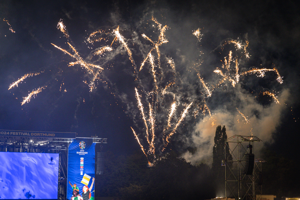 Eröffnung der Fanzonen in Dortmund – zum Eröffnungsspiel der EURO2024 mit dem Spiel Deutschland gegen Schottland wurden auch die Dortmunder Fanzonen auf dem Friedensplatz und im Westfalenpark eröffnet. Dort kann man nicht nur die Fußballspiele erleben. Das EURO 2024 Festival lädt an 31 Tagen zu 47 Konzerten. Das Highlight: zwei Top-Konzerte am 12. und 13. Juli im Westfalenpark.