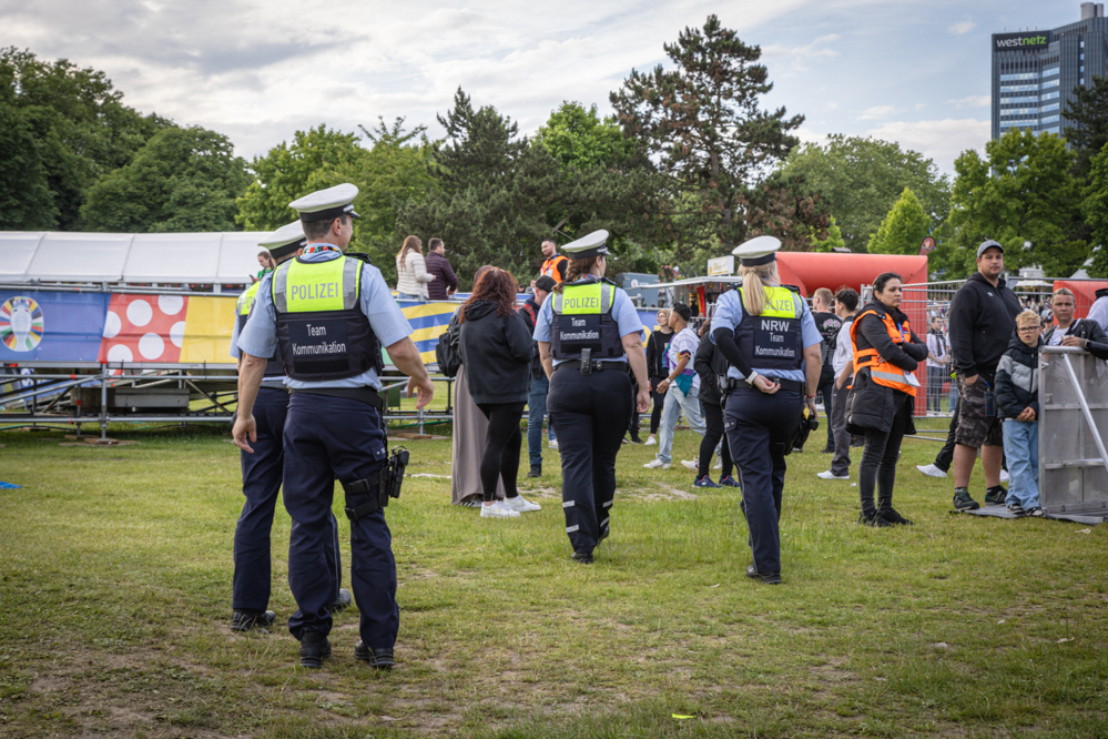 Einen stimmungsvollen EURO 2024-Auftakt erlebten rund 13.500 Fußballfans am Freitag (14.6.2024) in den Fan Zones auf dem Friedensplatz und im Westfalenpark in Dortmund. Aus Sicht der Dortmunder Polizei verlief der Einsatz positiv. Stand 23:45 Uhr blickt die Polizei auf einen friedlichen Einsatz mit vorbildlichem Fan-Verhalten zurück.