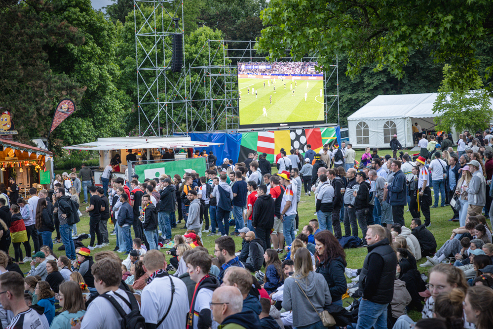 Die Host City Dortmund bietet während der UEFA EURO 2024 ein kostenloses Public Viewing im Westfalenpark an. In Dortmunds größtem Park werden noch bis zum 14. Juli alle noch folgenden fünf Spiele in der Host City Dortmund, alle Partien der deutschen Nationalmannschaft und das Finale auf einer 144 Quadratmeter großen Leinwand live übertragen. Selbst aktiv werden können Besucher*innen auf kleinen Fußballfeldern in der Soccer Area, an Tischkickern und Bolzboxen. Oder sie nehmen am kostenlosen Escape Game teil: Hier können sie in kleinen Teams gemeinsam in die Fußballkultur eintauchen und spannende Rätsel lösen.