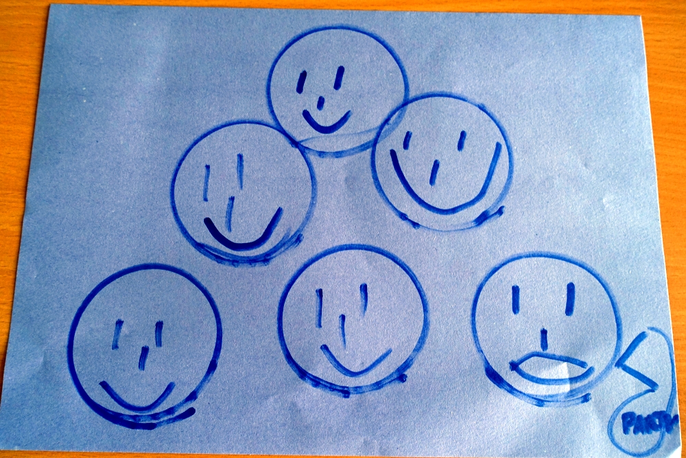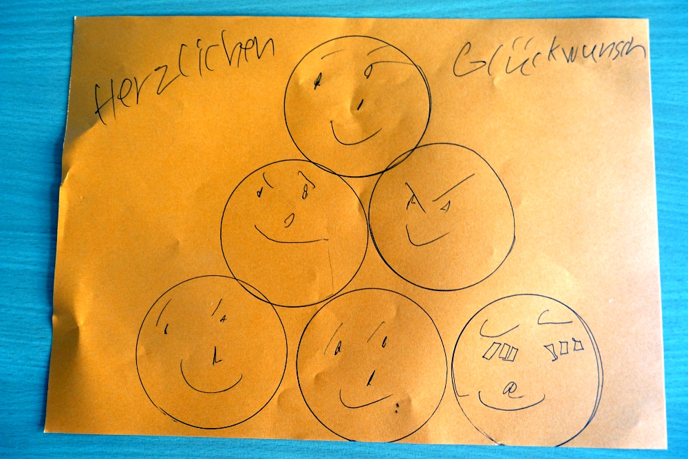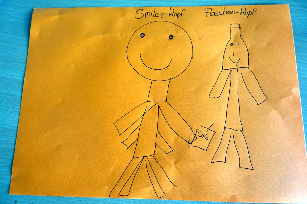 Dabei behalfen sie sich eher untypischer Gegenstände wie Plastikflaschen, mit dem Boden lässt sich wunderbar der Umriss einer Blume malen, oder es wurde eine Schere als Schablone zweckentfremdet. Was einem halt so in die Finger kommt, ohne noch zu denken „Reicht das aus? Funktioniert das überhaupt?“, wie vielleicht Ältere herangehen würden. Einfach das machen, was man will. Kreativität in Reinform.