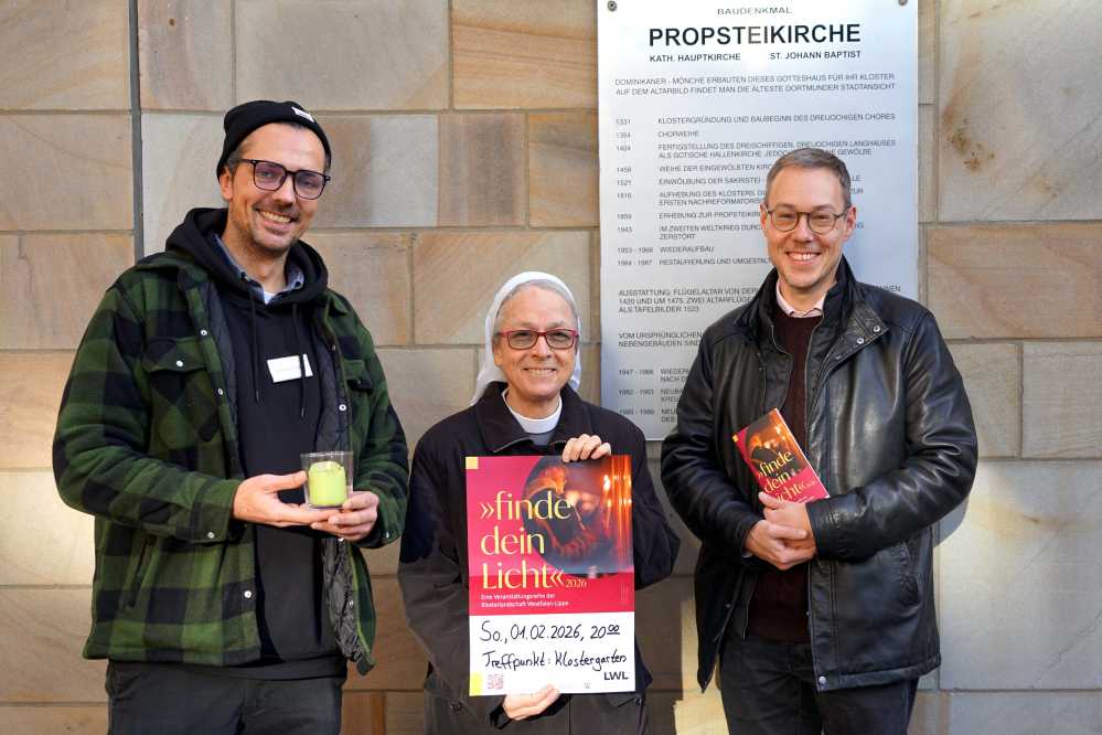 Unter dem Titel „Entzünde (m)ein Licht“ laden der Dortmunder Konvent Rivotorto der Sießener Franziskanerinnen, Dekanatsmusiker Simon Daubhäußer und das Katholische Forum Dortmund am 1. Februar 2026, zu einer besonderen Abendveranstaltung in den Klostergarten der Propstei, Propsteihof 3, ein. Beginn ist um 20 Uhr. Die Veranstaltung ist Teil der landesweiten Reihe „Finde dein Licht 2026“ der Klosterlandschaft Westfalen-Lippe in Kooperation mit dem Landschaftsverband Westfalen-Lippe (LWL).