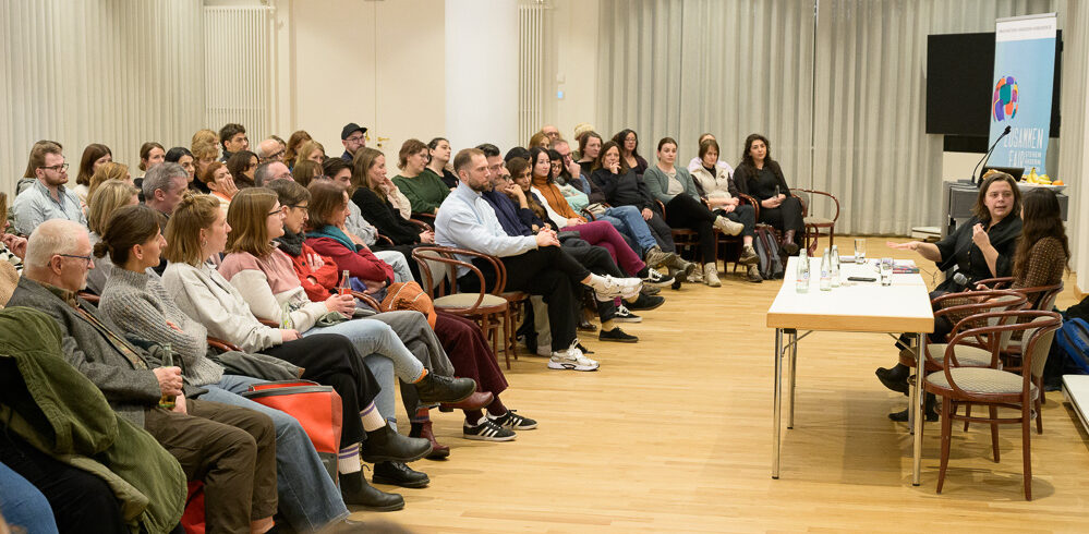Es melden sich immer mehr Zuhörer:innen zu Wort. Daraus entsteht eine lebhafte Diskussion. Sie erzählen von Streit am Arbeitsplatz, von hitzigen Diskussionen in Vereinen, von politischen Debatten, die Freundschaften belasten. Viele sprechen von Ohnmacht, der Austausch im Raum wirkt erleichternd.
