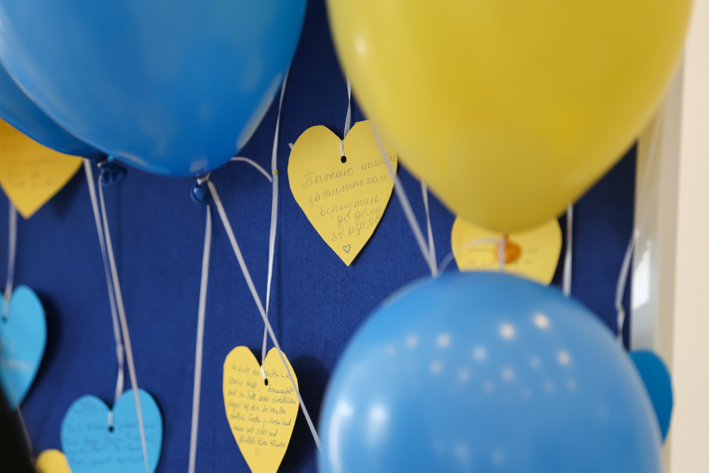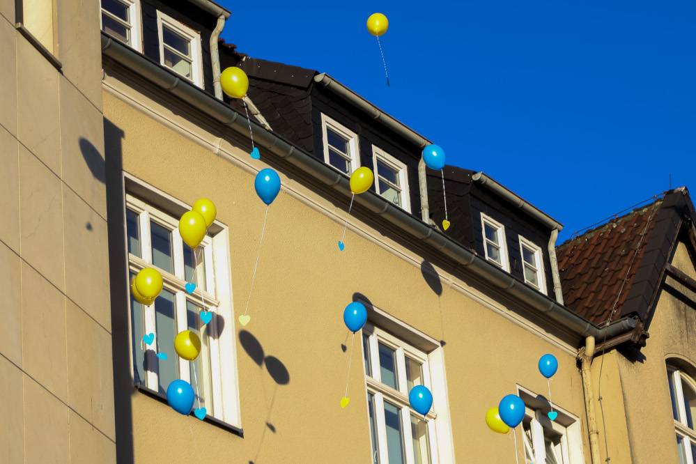 Zum Ende der Veranstaltung nehmen die Besucher:innen die Luftballons mit den gelben und blauen Wunschkarten mit nach draußen und lassen sie gemeinsam in den Himmel steigen. Inna wischt sich eine Träne von der Wange. Sie weiß noch nicht, wie es für sie und ihre Familie weitergeht. Sie würde gerne eine Ausbildung im sozialen Bereich machen oder studieren, um Lehrerin zu werden.