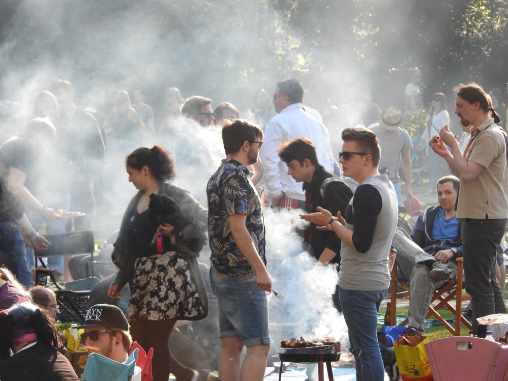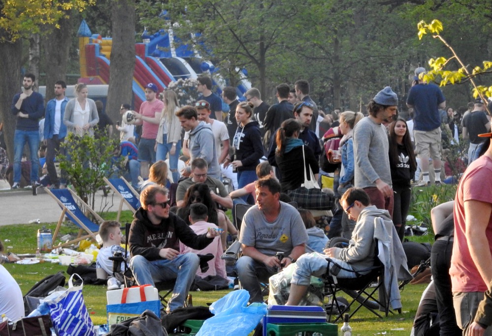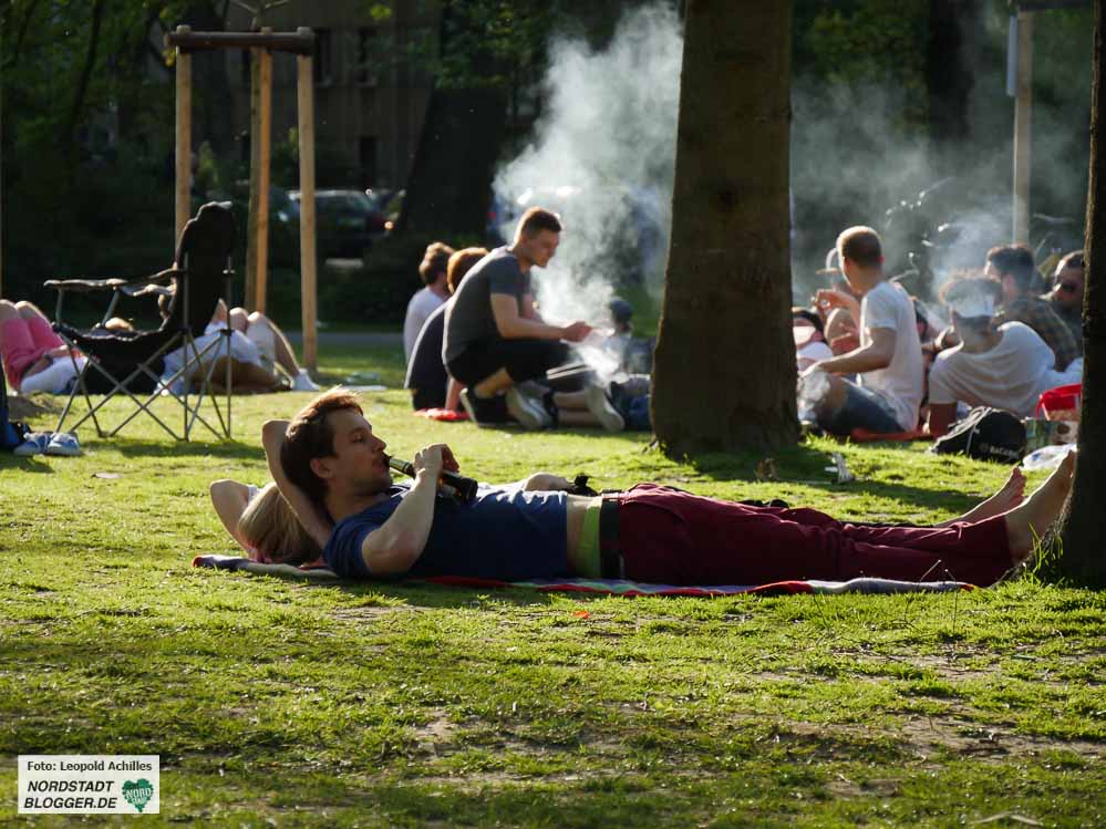 Am „Vatertag“(Christi Himmelfahrt) waren natürlich wieder viele Menschen auch mit Bollerwagen unterwegs. Sie ließen es sich – wie tausende andere Menschen – im Park gut gehen.