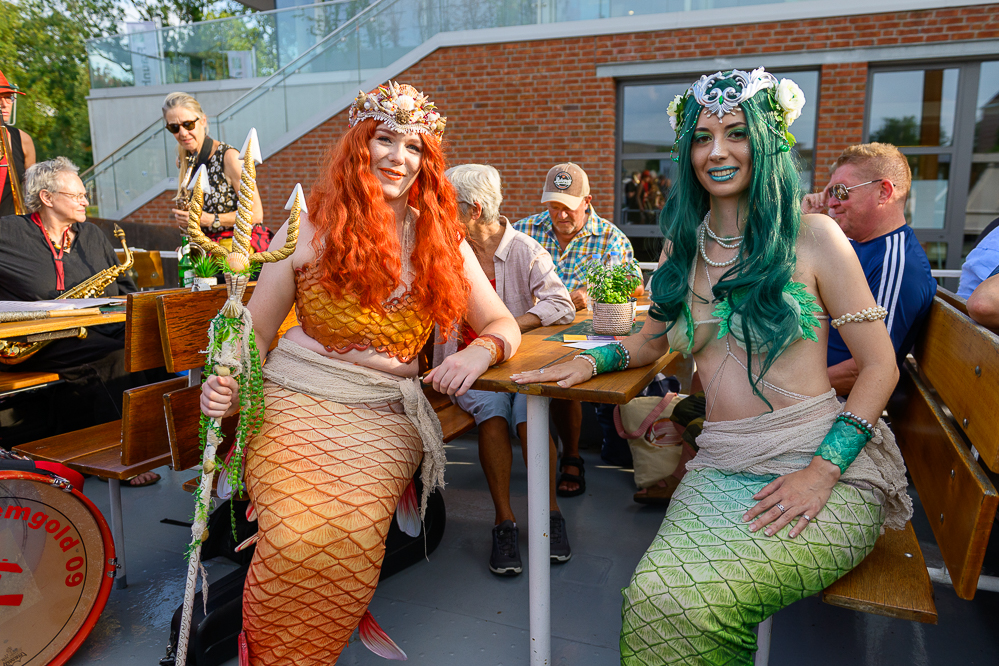 Zwei Meerjungfrauen schunkelten mit den Leichtmatrosen an Deck.