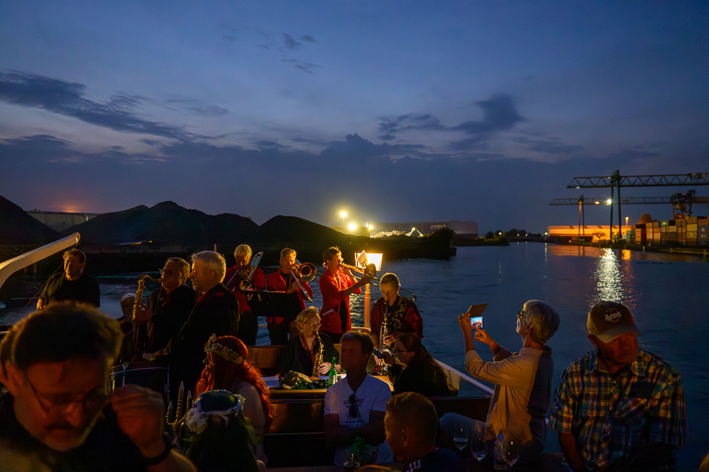 Am frühen Dienstagabend lud das Künstler:innen-Kollektiv von DADADO zu ihrer ersten dadaistischen Schifffahrt mit 3 F’s. Frische – Fahrt – Voraus hieß es für die Gäste:innen und jeder Menge Programm aus Musik und Literatur. Hier dazu die Foto-Love-Story.