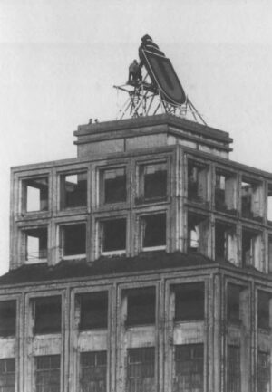 In Vergessenheit geriet sein spektakulärer Vorläufer: die „Eisenbeton-Beleuchtungspyramide“, ein drehbarer, elektrisch betriebener Scheinwerfer, der bei Dunkelheit die von 67 Scheinwerfern beleuchtete riesige Dachkuppel krönte. Entworfen und realisiert wurde sie von der Dortmunder Firma AEW, Allgemeine Elektromotoren-Werke, spezialisiert auf „effektvolle und moderne Beleuchtungs- und Leuchtschilder-Anlagen“