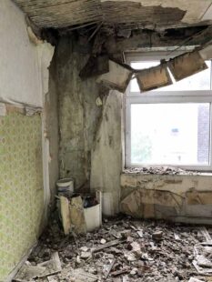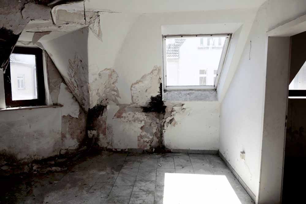In der Holzkonstruktion breitete sich Hausschwamm aus, Wände waren verschimmelt, Teile der Bausubstanz bereits zerstört. Strom- und Wasserversorgung funktionierten zuletzt nicht mehr. Hinzu kam eine massive Vermüllung des Gebäudes.
