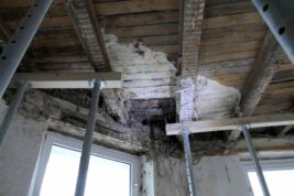 „Das Gebäude statisch in den Griff zu kriegen“, beschreibt Tempel die zentrale Aufgabe. Das Dach war undicht, die oberste Geschossdecke musste komplett erneuert werden, der Hausschwamm hatte Teile des Gebälks befallen. Gleichzeitig legte der Investor Wert darauf, den historischen Charakter des Hauses zu erhalten. Die Fassade wurde möglichst originalgetreu wiederhergestellt – ein Verweis auf die über 100-jährige Geschichte des Gebäudes.