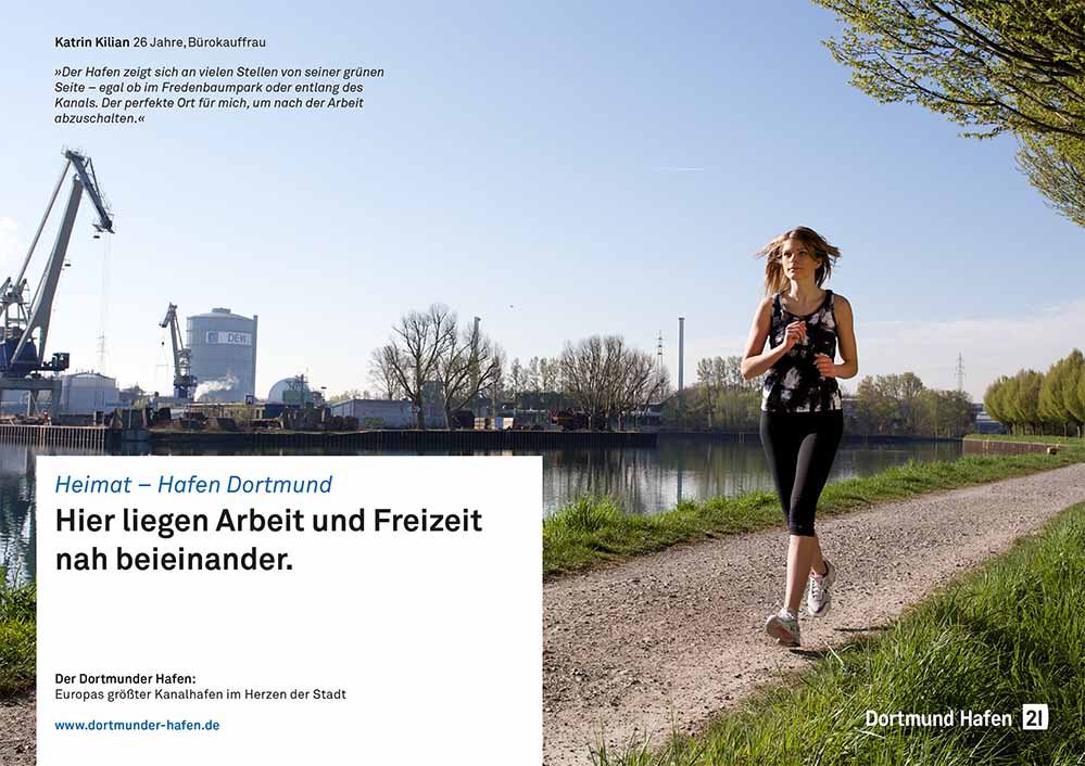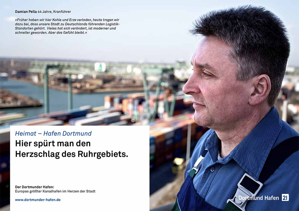 Im Rahmen der Jahres-PK im Alten Hafenamt stellte Uwe Büscher auch die neue Kommunikationslinie „Heimat – Hafen Dortmund“ vor. Sie soll die enge Verbundenheit des Hafens mit Dortmund und den Menschen, die in Dortmund leben, dokumentieren.