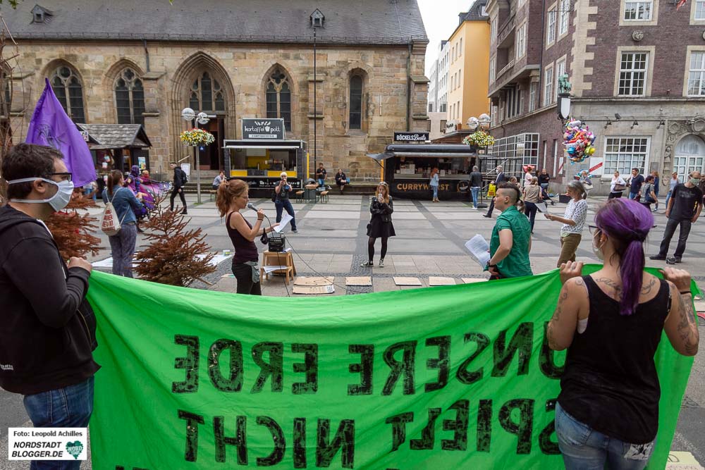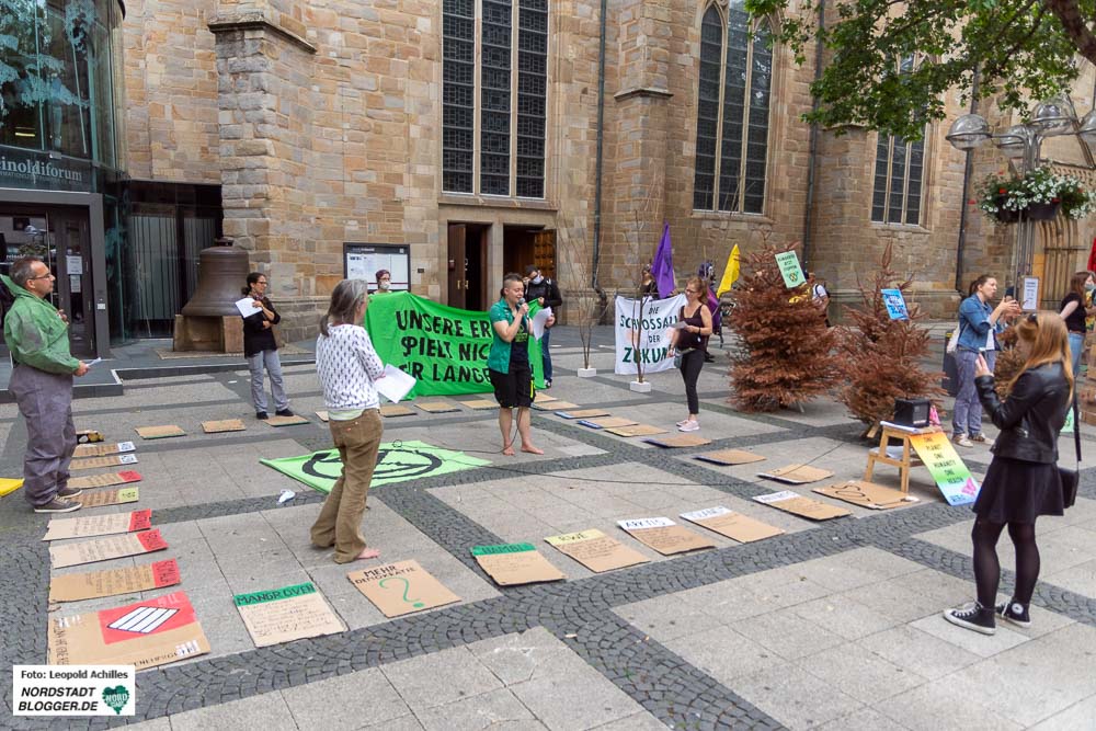 „In Dankbarkeit und Hoffnung auf seine Brüder und Schwestern nehmen wir Abschied von unserem liebevollen Freund dem Wald“, schrieben „Exctinction Rebellion“ im Vorfeld in den sozialen Netzwerken. Und riefen mit einer „Todesanzeige“ zum „politischen Einsatz“ am 17. Juni ab 14 Uhr an der Reinoldikirche in Dortmund auf. ___STEADY_PAYWALL___