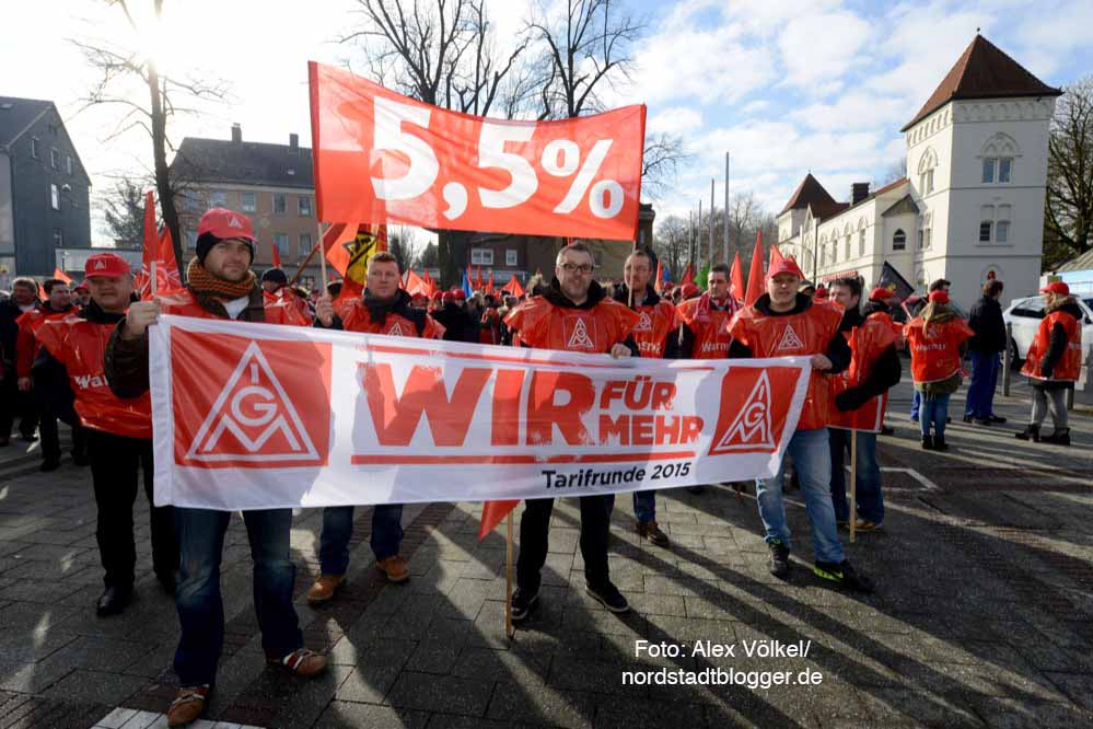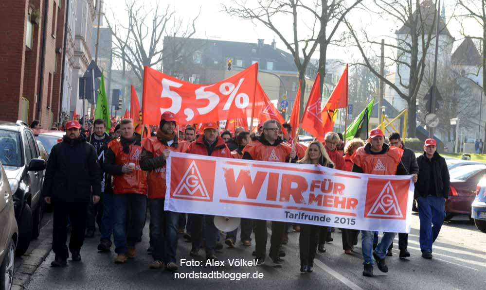 Rund 13 900 Beschäftigte der Metall- und Elektroindustrie von NRW folgten am Mittwoch dem Warnstreik-Aufruf der IG Metall. Sie stellten sich demonstrativ hinter die Forderungen ihrer Gewerkschaft. In 116 Betrieben ruhte für bis zu drei Stunden die Arbeit. Auch Donnerstag, am Vortag der dritten Tarifverhandlung, wird es zu Streikaktionen kommen, beispielsweise in Bielefeld, Hellenthal bei Euskirchen, Neuss, Unna und Kleve.