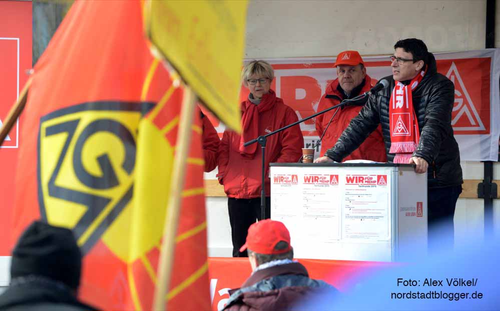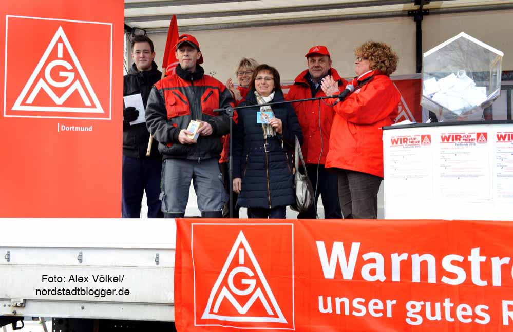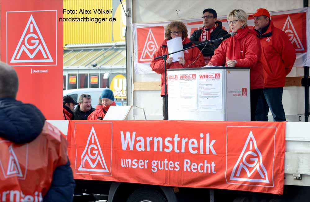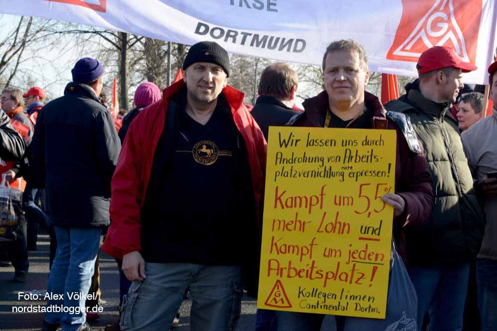 Im Bereich der IGM-Verwaltungsstelle Dortmund haben 1600 Beschäftigte in 16 Betrieben der Metall- und Elektroindustrie die Arbeit niedergelegt. 800 Beschäftigte haben an der Warnstreikkundgebung vor dem Werkstor der Continentale Automotive GmbH teilgenommen.