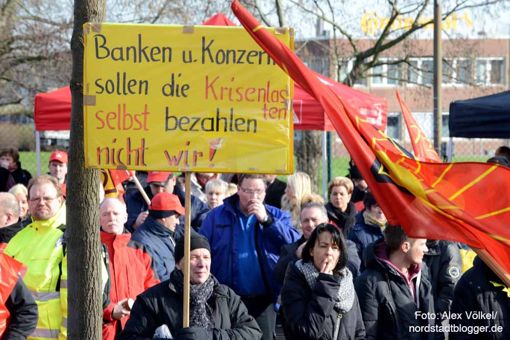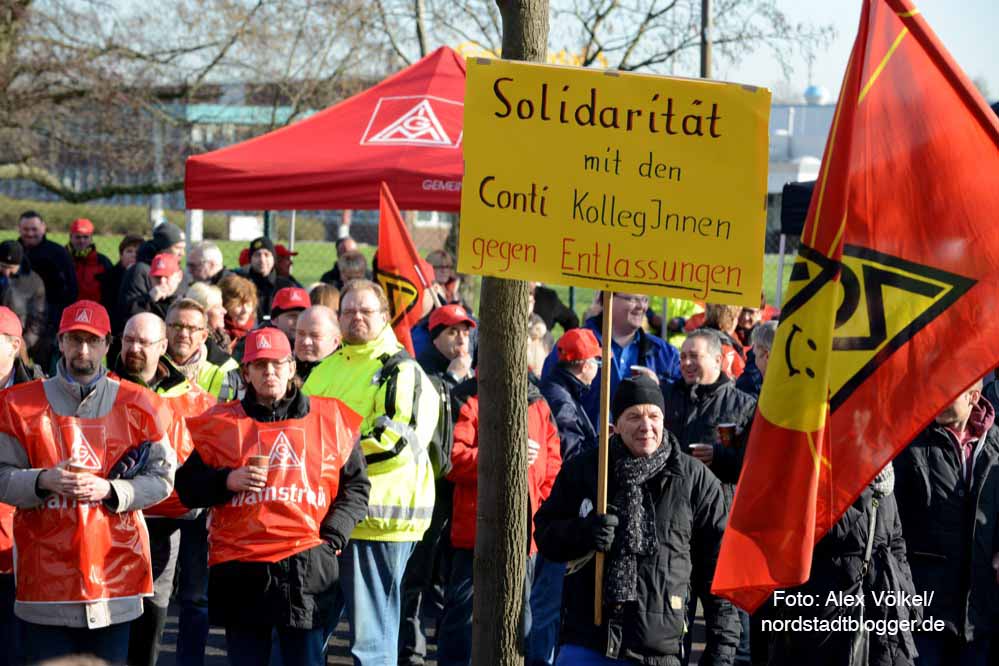Sehr gelungen finde ich die Bilder vom Warnstreik, weil hier deutlich wird, dass kämpferische Kolleginnen und Kollegen den Warnstreik um 5,5 % mehr Lohn mit der Losung: Kampf um jeden Arbeitsplatz verbinden. Die Verlagerung nach Rumänien wird ja offiziell damit begründet, dass die Löhne in Deutschland zu hoch seien. Das ist reine Erpressung zum Lohnverzicht! Kämpferische IG Metaller und Kollegen sagen dagegen: Wir brauchen die Arbeitsplätze und höhere Löhne! Was helfen uns Arbeitsplätze, wo der Lohn nicht zum Leben reicht ? Deshalb werden wir uns auch nicht davon abbringen lassen beides zu fordern und dafür zu kämpfen: Für 5,5 % mehr Lohn und Kampf um jeden Arbeitsplatz! Der Solidaritätskreis Conti- Kolleginnen und Kollegen unterstützt die Kollegen dabei! Siehe Bilder hier und bei http://www.conti-solidarität.info