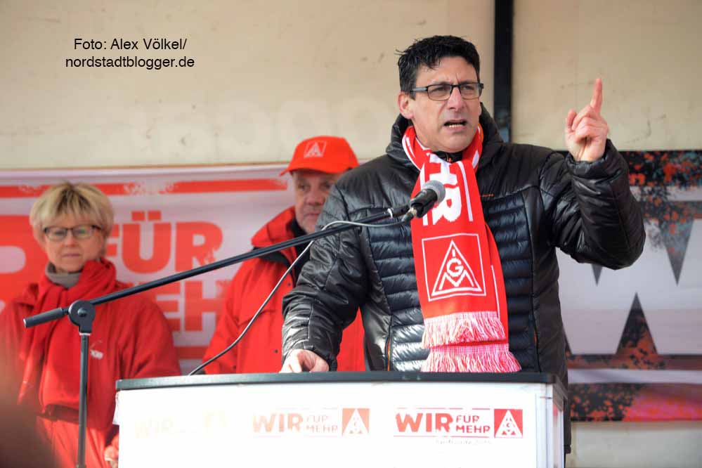 Auf der Kundgebung vor Continental Automotive in Dortmund-Dorstfeld sprach IG Metall-Bezirksleiter Knut Giesler vor mehreren hundert Beschäftigten aus Dortmund und Lünen.